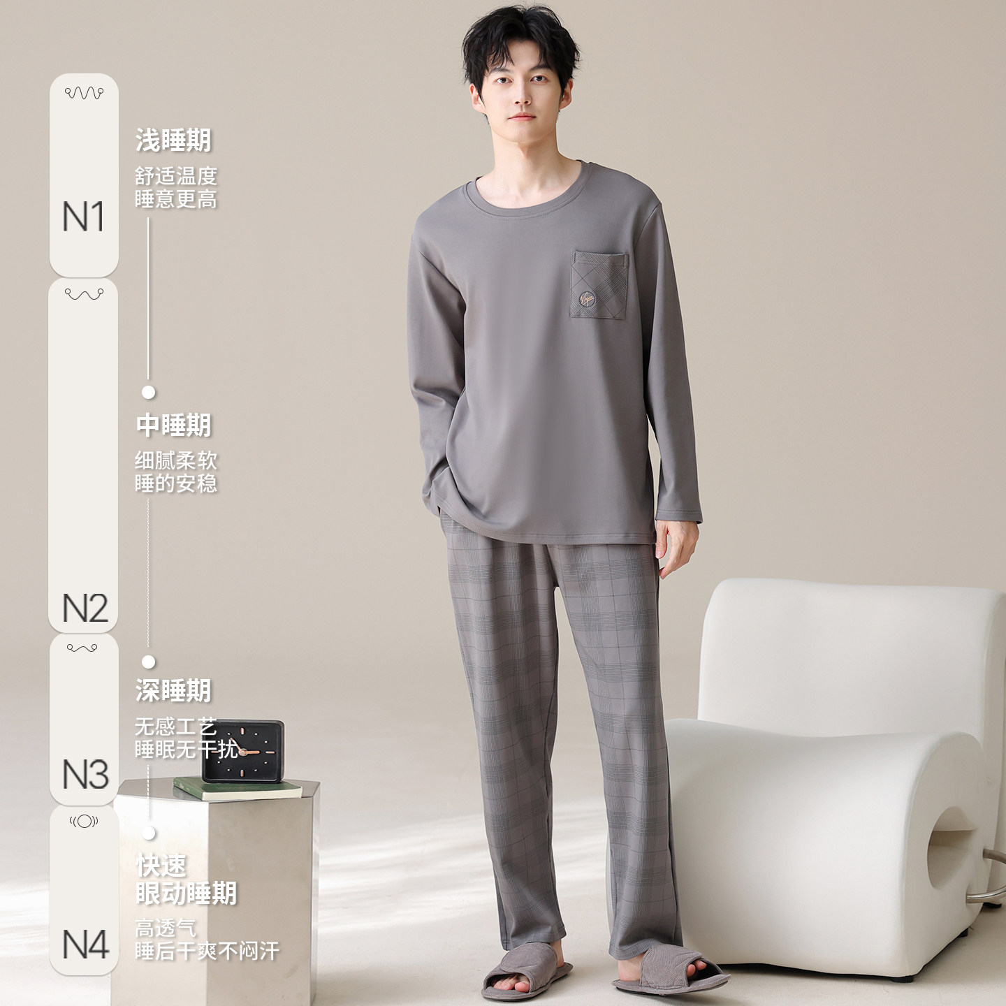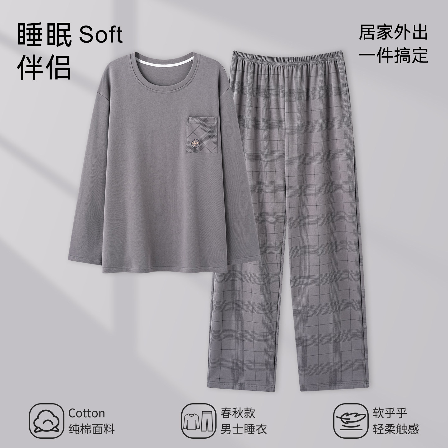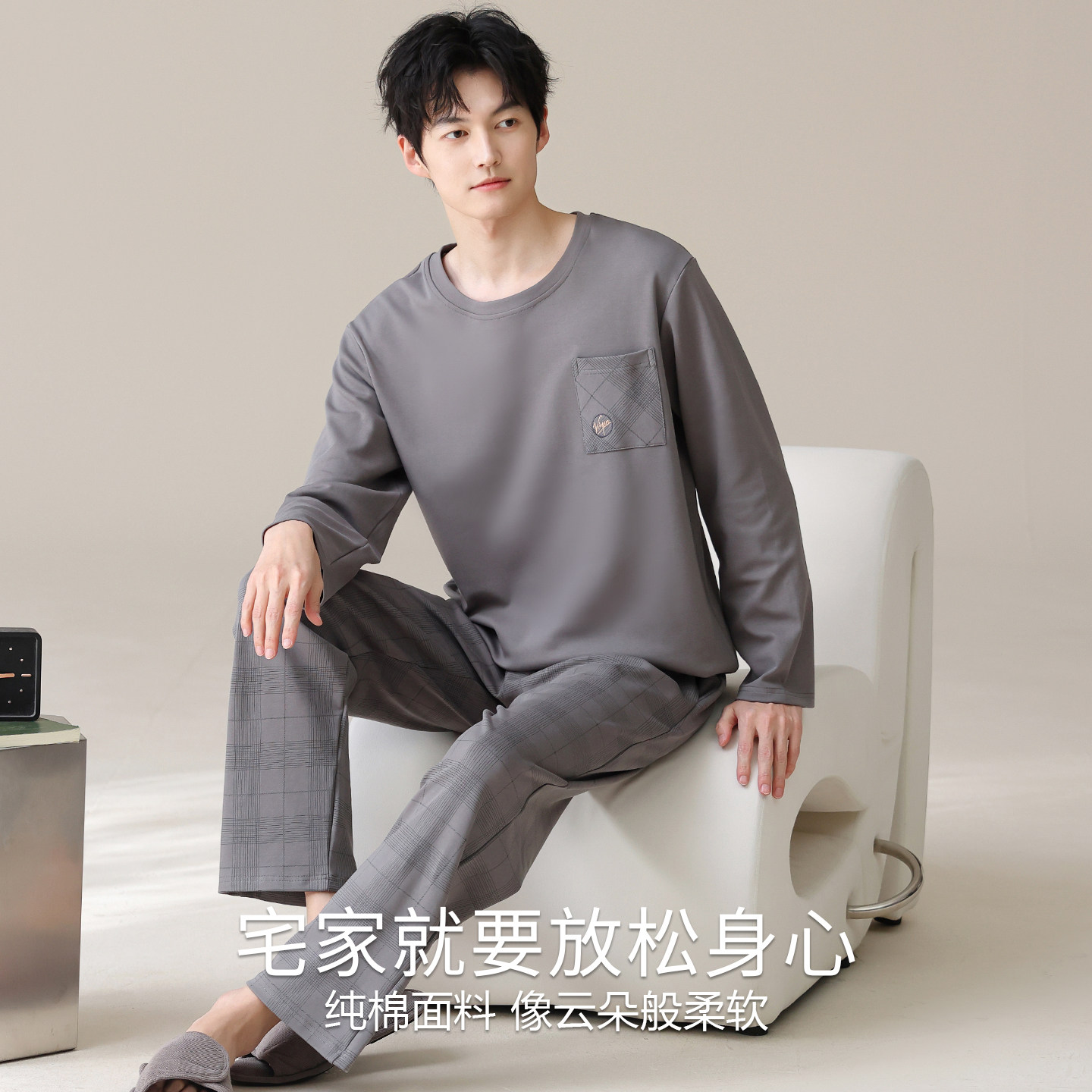 芬腾可安睡衣男款男士春秋季高级感纯棉布料100全棉英俊家居服冬