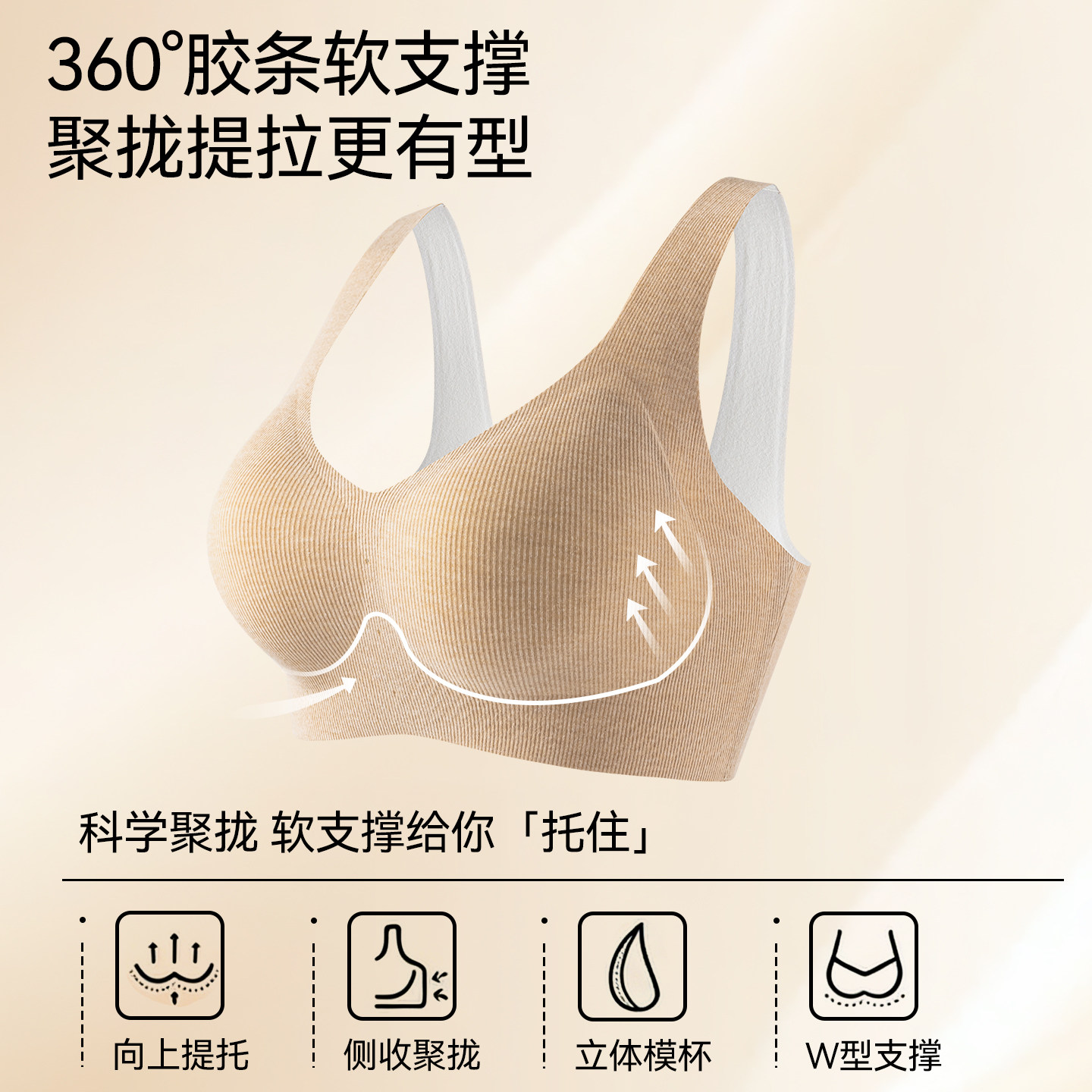 猫人无痕内衣女士聚拢小胸收副乳防下垂文胸背心式无钢圈美背胸罩
