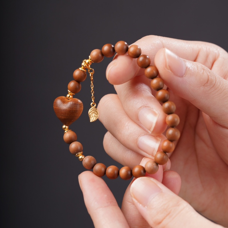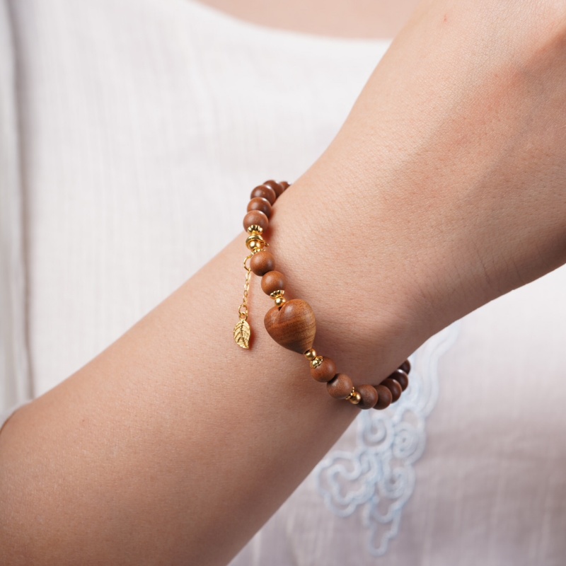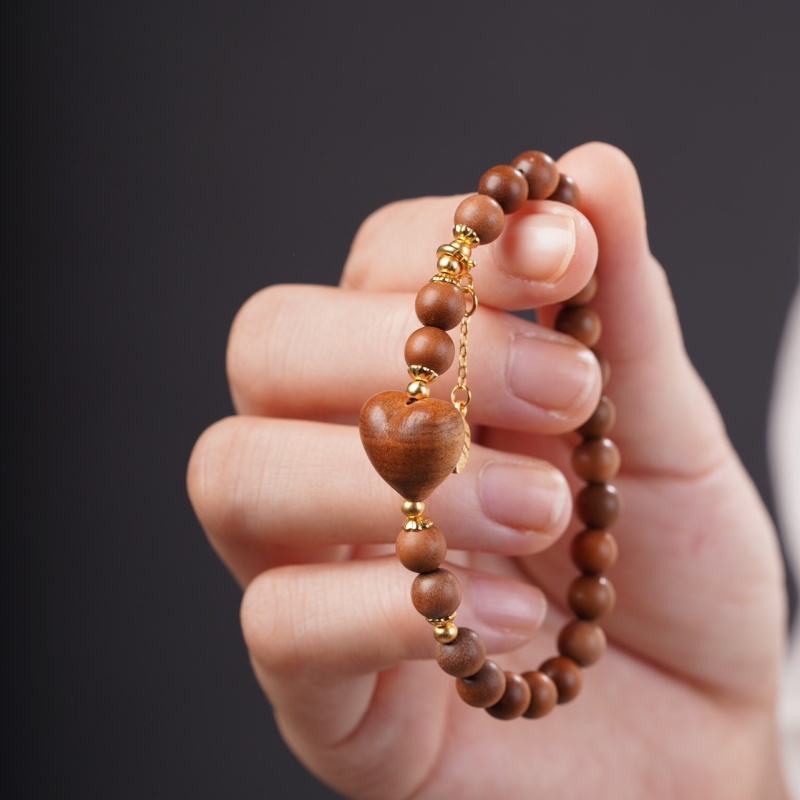 正宗印度老山檀香木6mm单圈佛珠手串手链爱心配饰送礼佳品