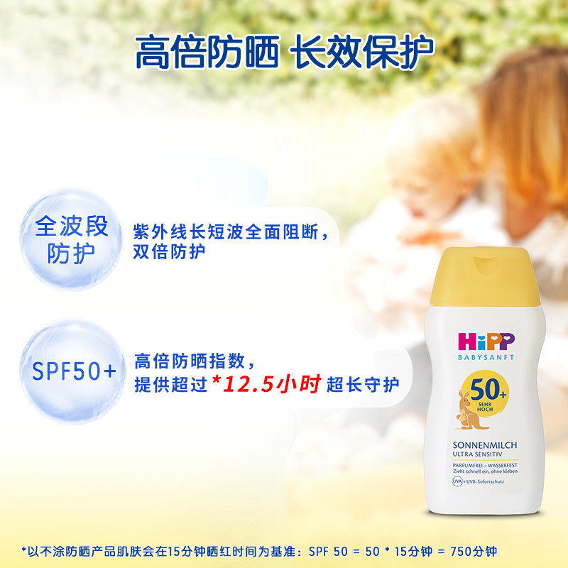 德国喜宝HiPP婴儿童低敏温和防晒乳SPF50+夏季小孩宝宝防晒霜50ml