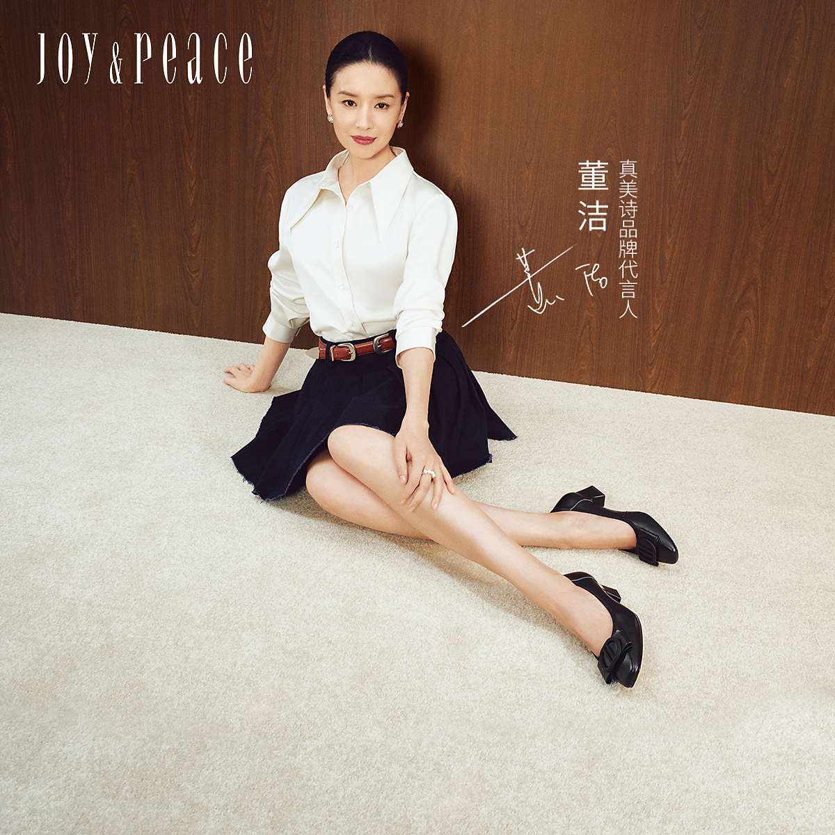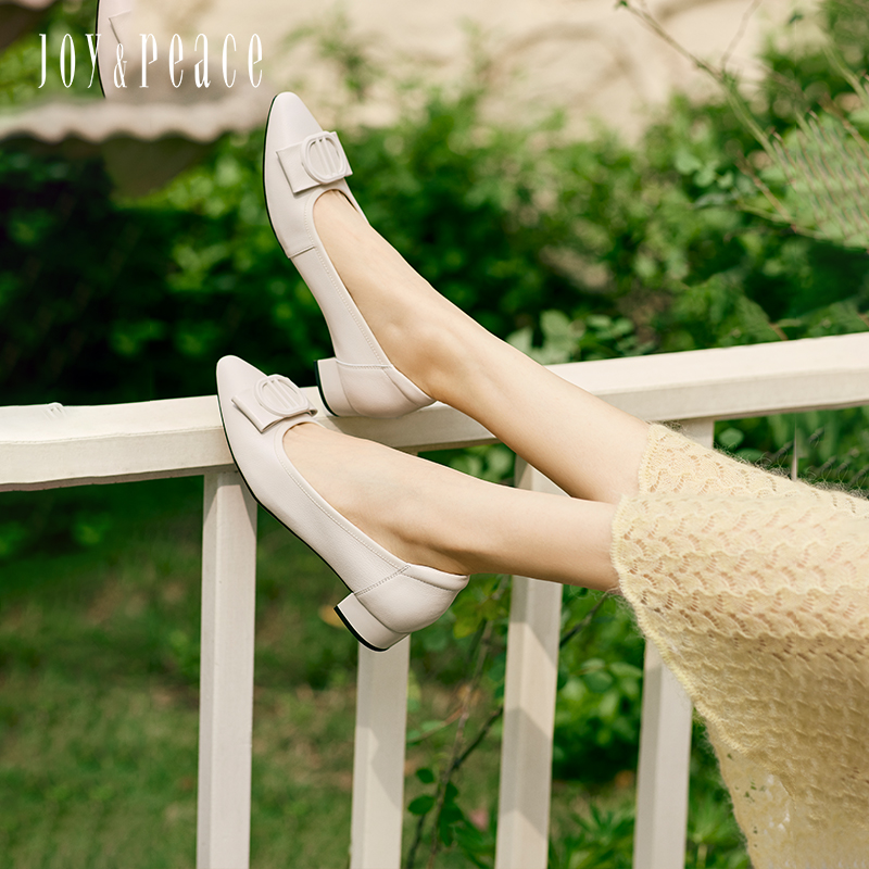 真美诗粗跟单鞋通勤牛皮小皮鞋