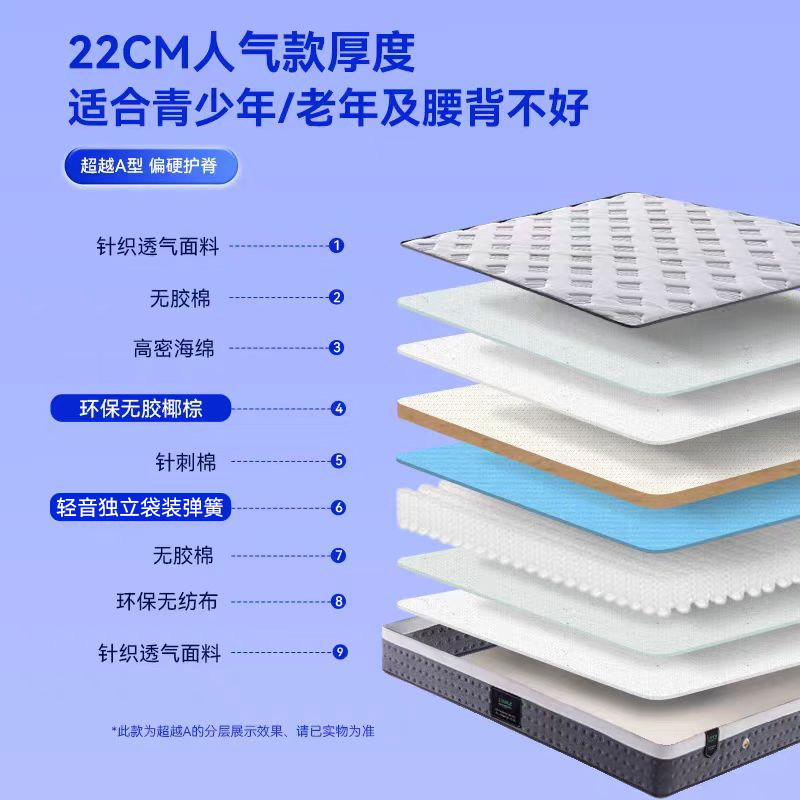 联乐席梦思袋装弹簧乳胶椰棕双人1米8大床软硬两用