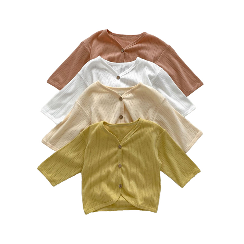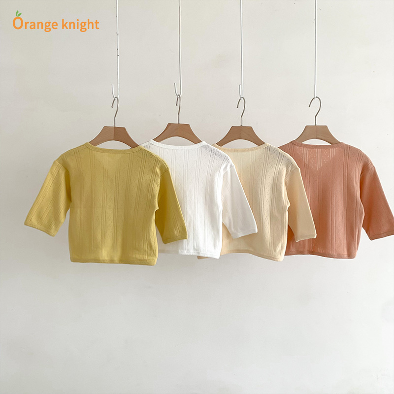 婴儿夏装针织开衫薄款宝宝空调服小童纯色韩版上衣韩系0一1岁外套