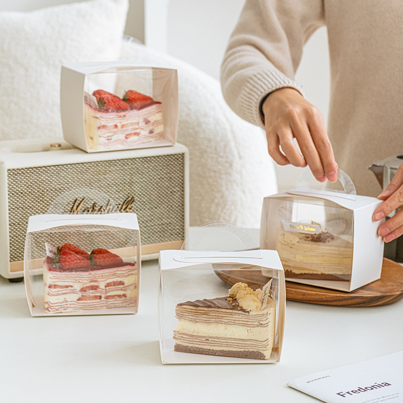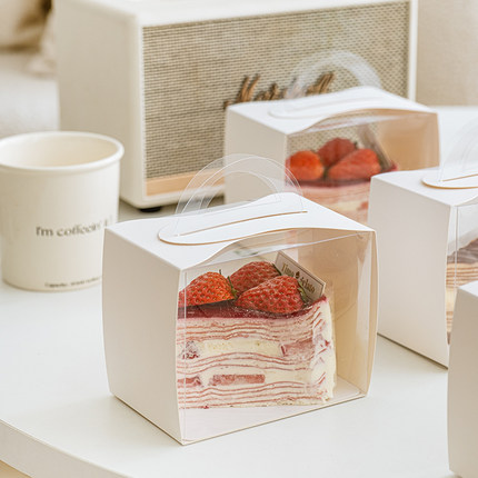 网红手提法式西点盒三角小蛋糕切块千层慕斯切件包装盒透明打包盒