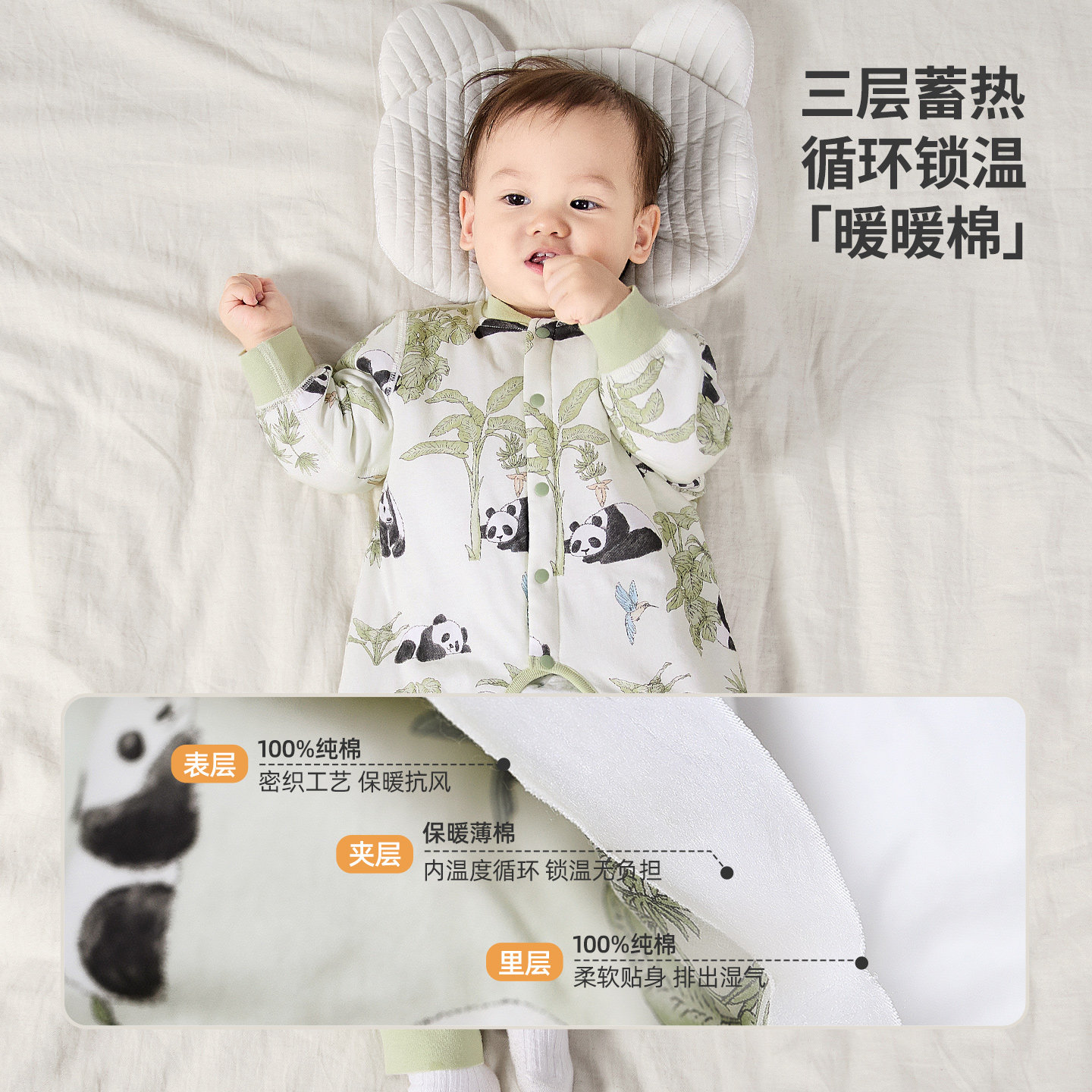 婴儿棉衣冬季宝宝开裆连体衣纯棉男女婴幼儿衣服夹薄棉睡衣秋冬装
