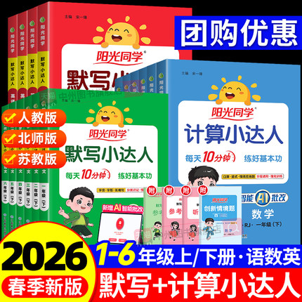 2026春 阳光同学计算默写小达人一年级二年级三四五六年级下册上册口算应用题数学专项训练同步练习册计算能手小学口算大通关速算