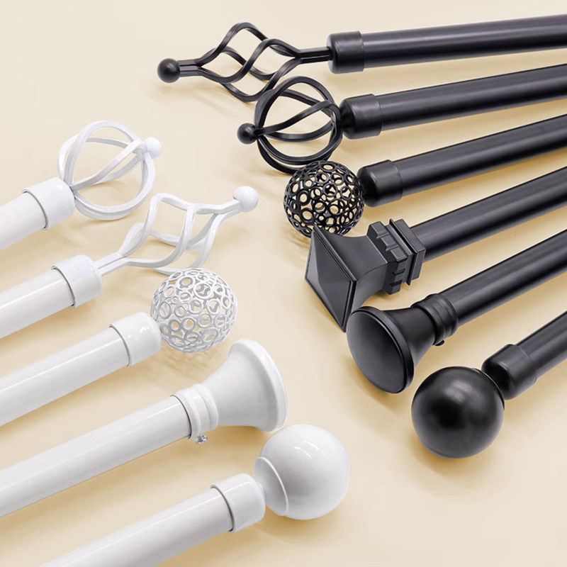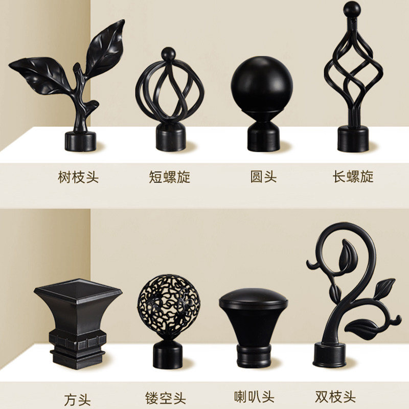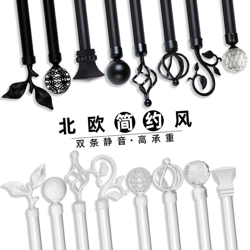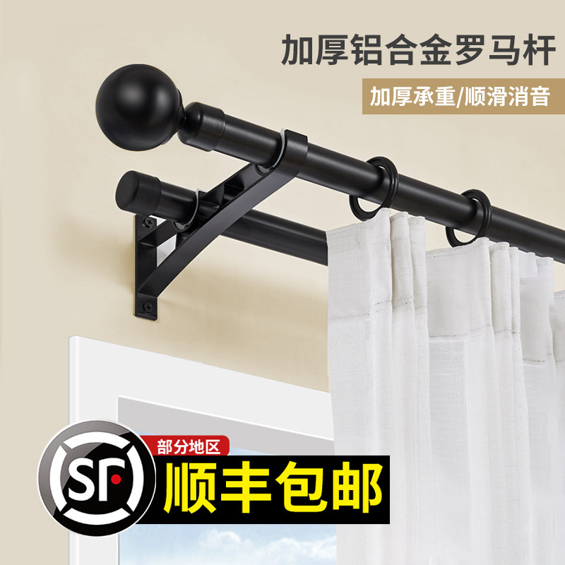 加厚铝合金北欧简约罗马杆窗帘杆艺术杆黑色单杆双杆顶装侧装打孔