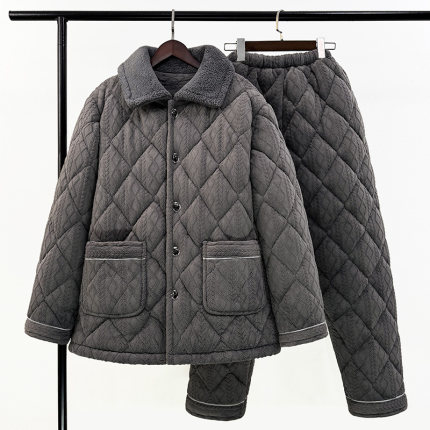 中老年男士睡衣冬季珊瑚绒夹棉加厚加大码爸爸保暖棉袄套装家居服