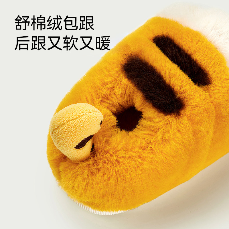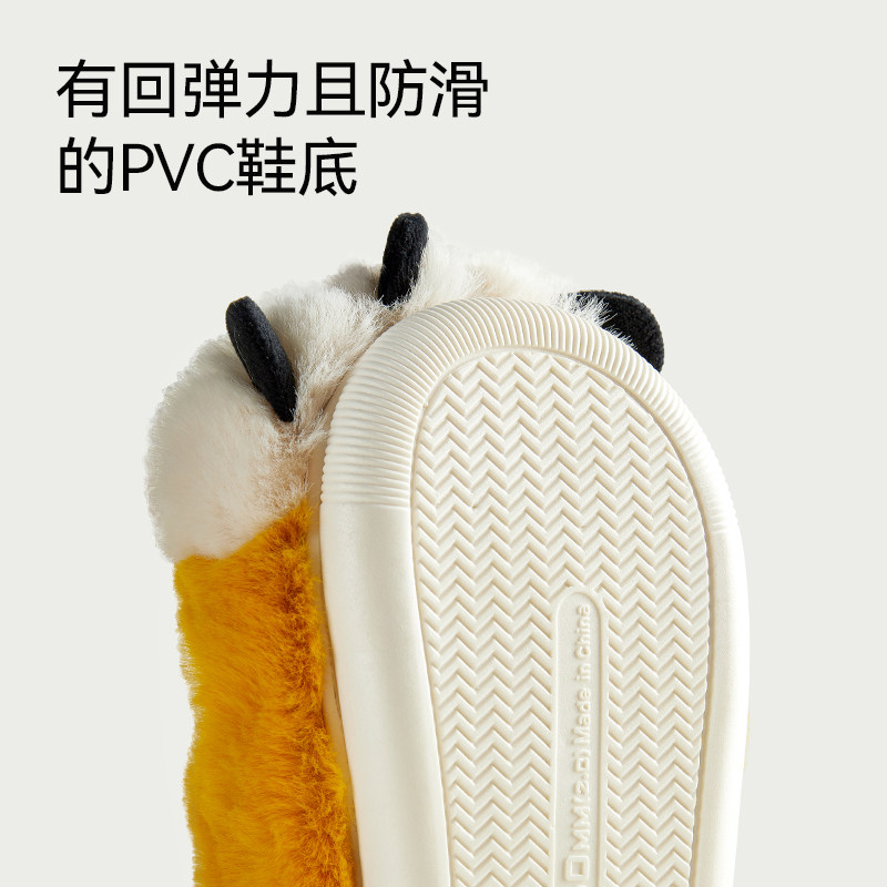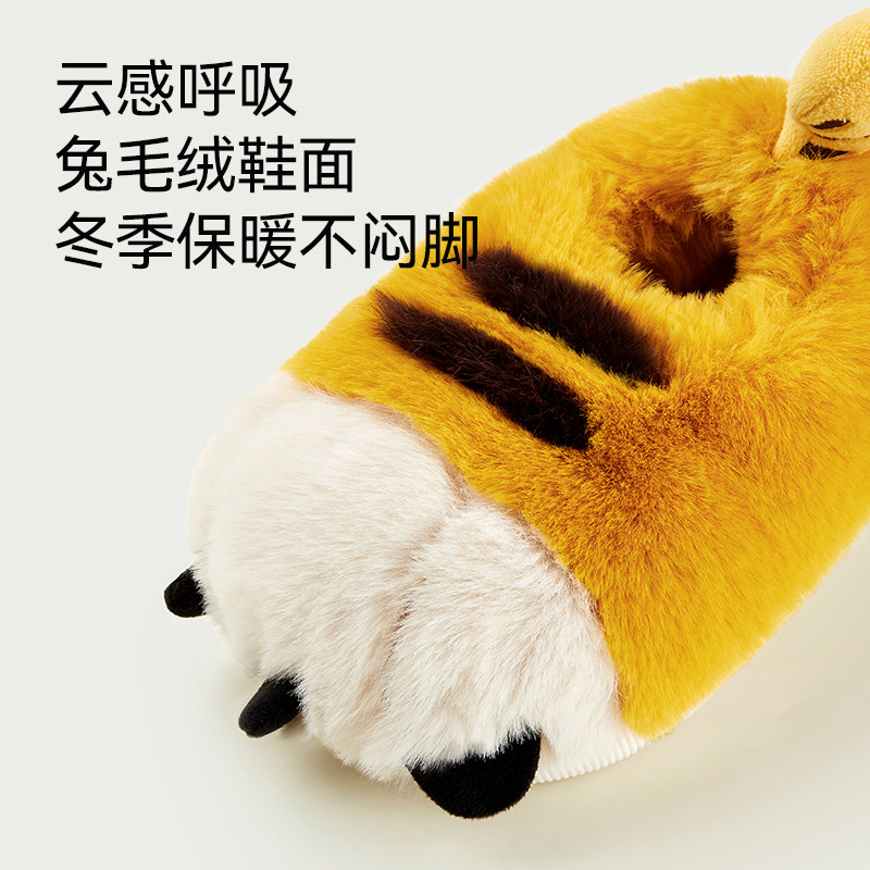 幸福玛丽老虎爪子棉拖鞋男孩冬季室内毛毛保暖女童中大童棉鞋包跟