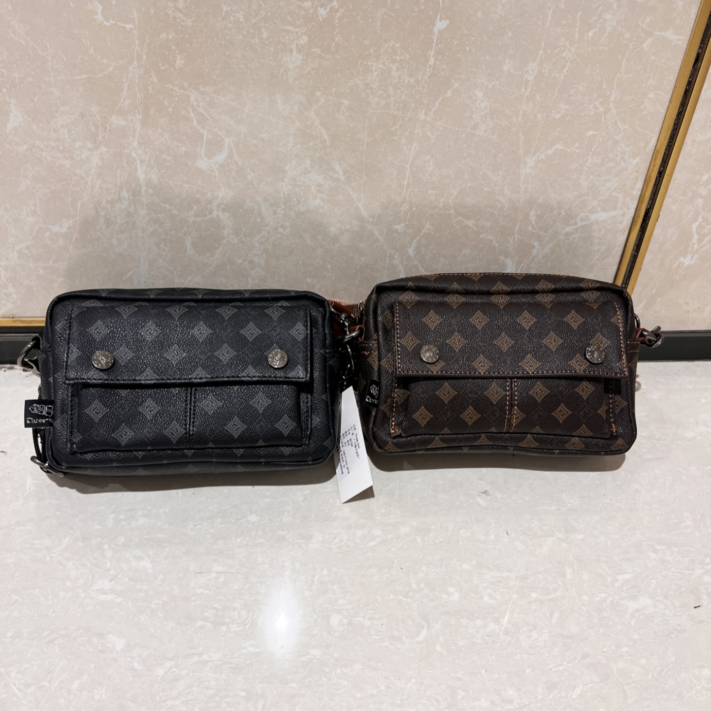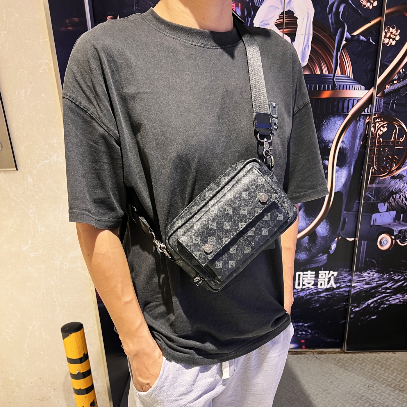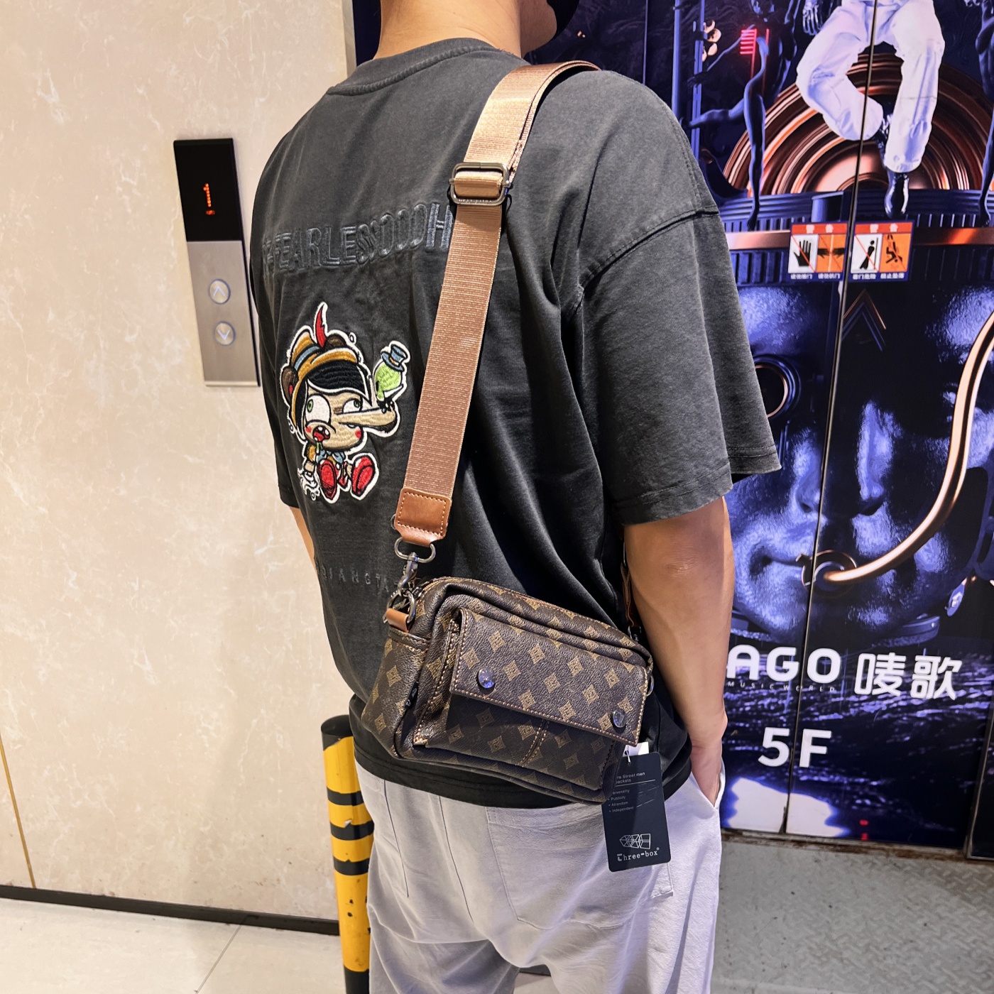 三盒子个性男斜挎包 休闲潮牌男单肩包 日常PVC通勤格子女小背包
