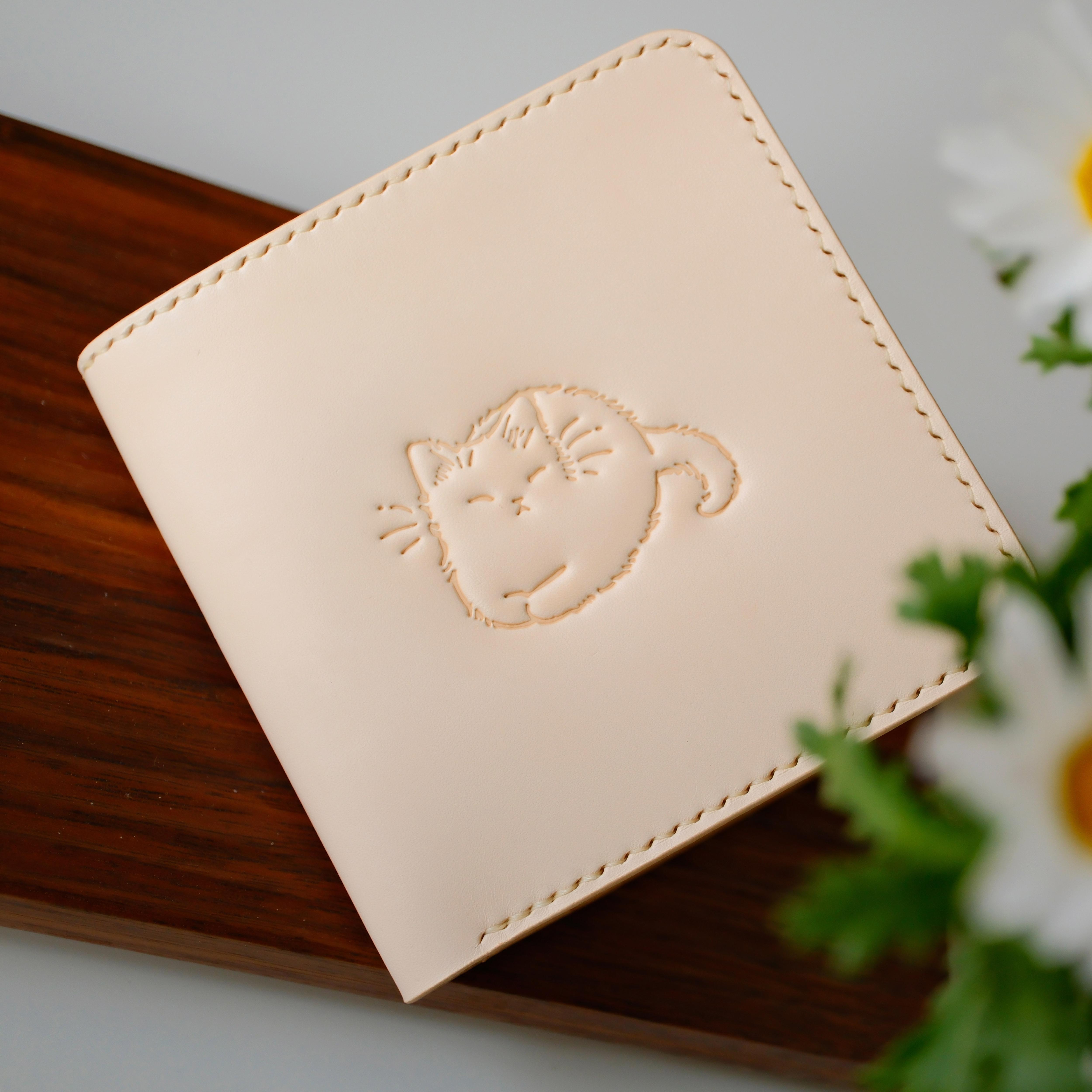 秋山手作 《猫咪》 原创手工制作头层牛皮多位卡包卡套钱包