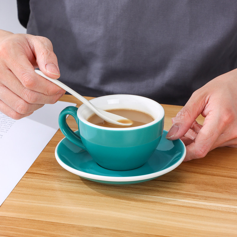 陶瓷拉花拿铁咖啡杯碟勺套装欧式卡布奇诺咖啡杯拿铁杯定制220ml