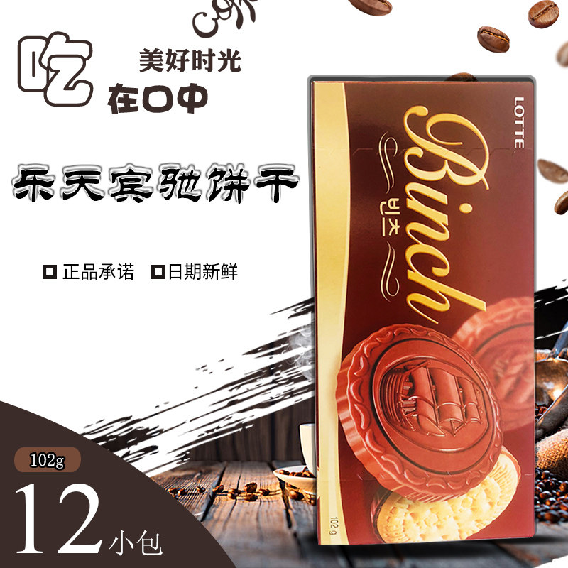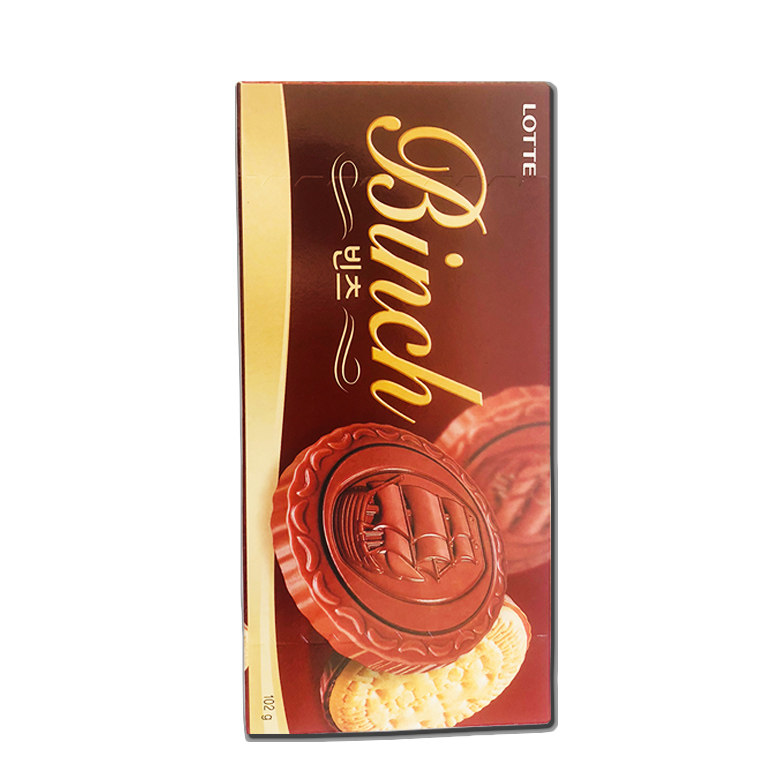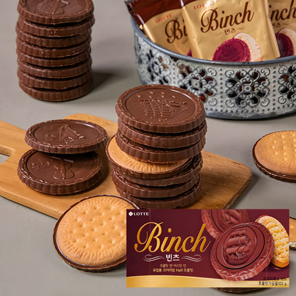 韩国进口零食乐天Binch宾驰纯黑巧克力饼干夹心102g休闲食品