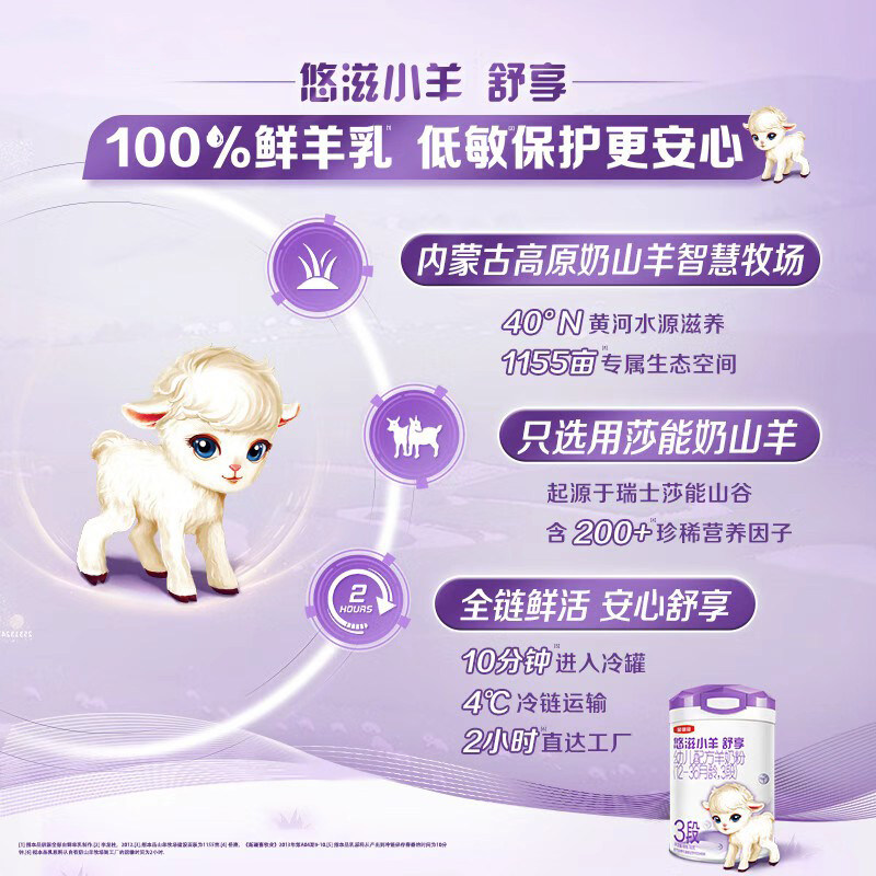 【100%鲜羊乳】伊利金领冠悠滋小羊舒享3段低敏配方羊奶粉700g*6