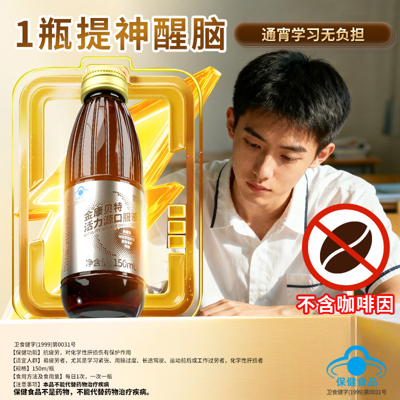 金康贝特提神醒脑防困学生熬夜学习备考试补充专注力抗疲劳口服液