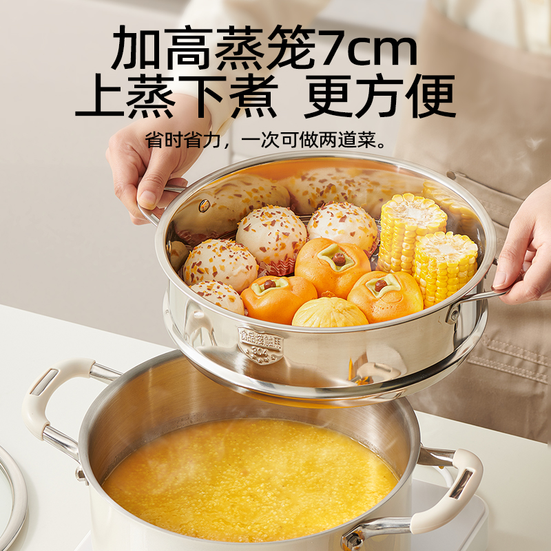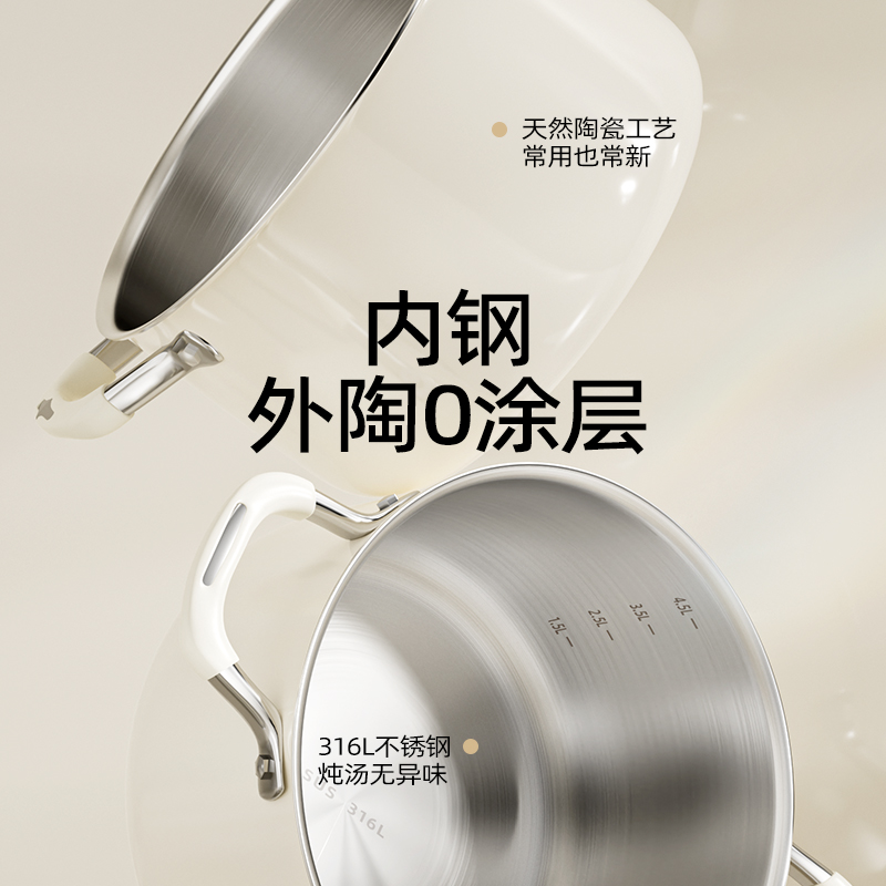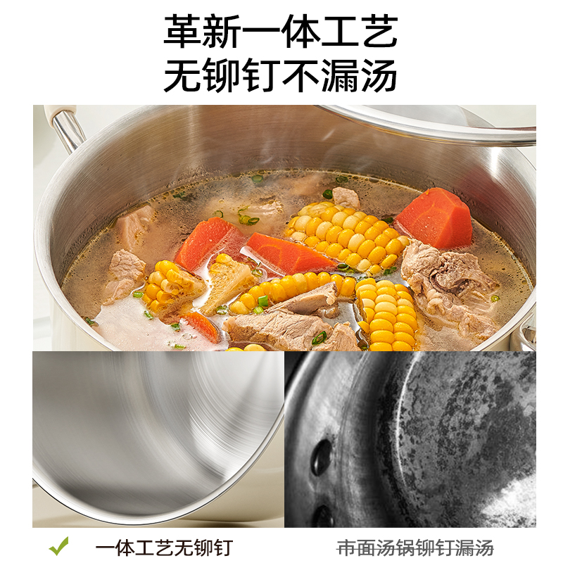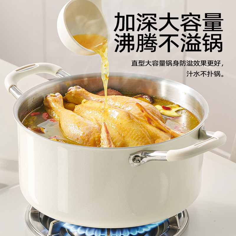 316L不锈钢汤锅无涂层陶瓷加厚家用煲汤炖锅电磁炉燃气蒸煮锅双耳