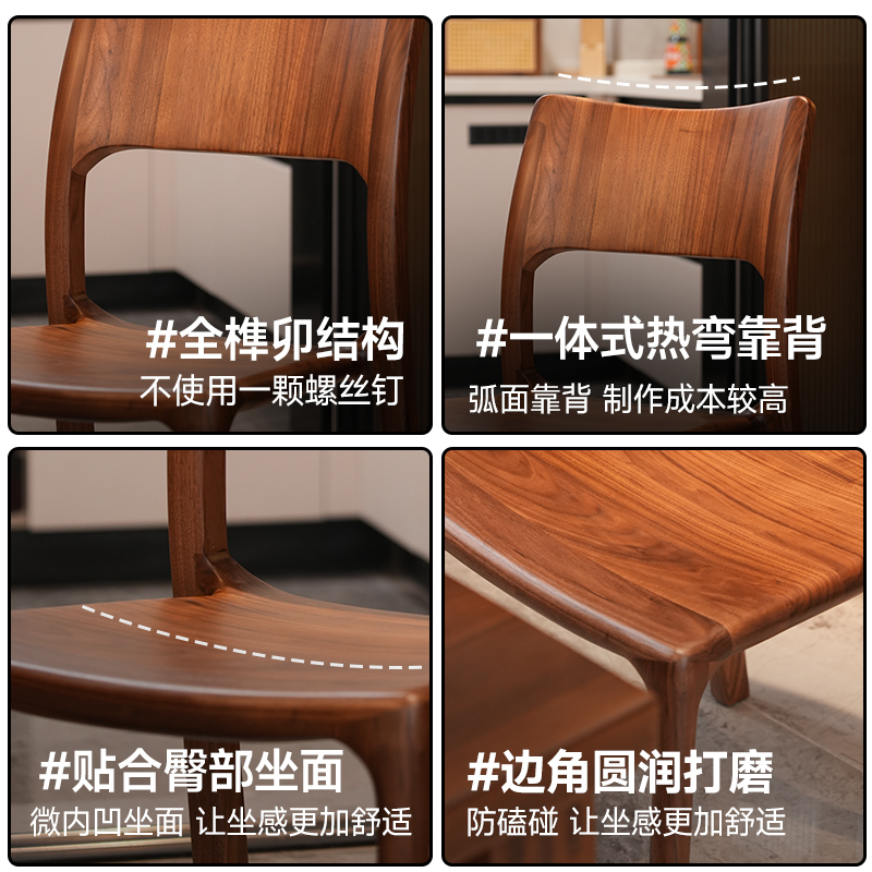 岚山椅北美黑胡桃木餐椅全实木椅子家用现代简约书桌椅休闲靠背椅