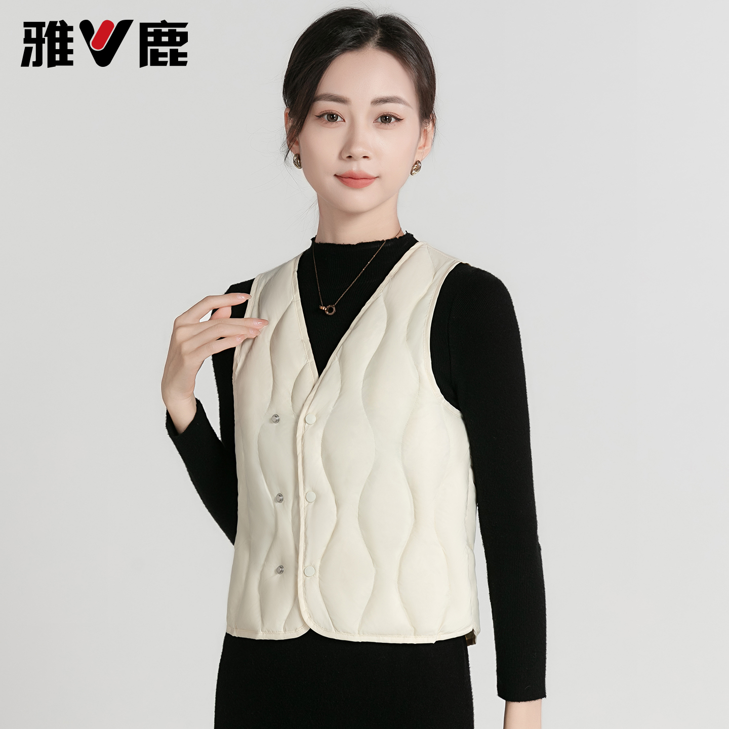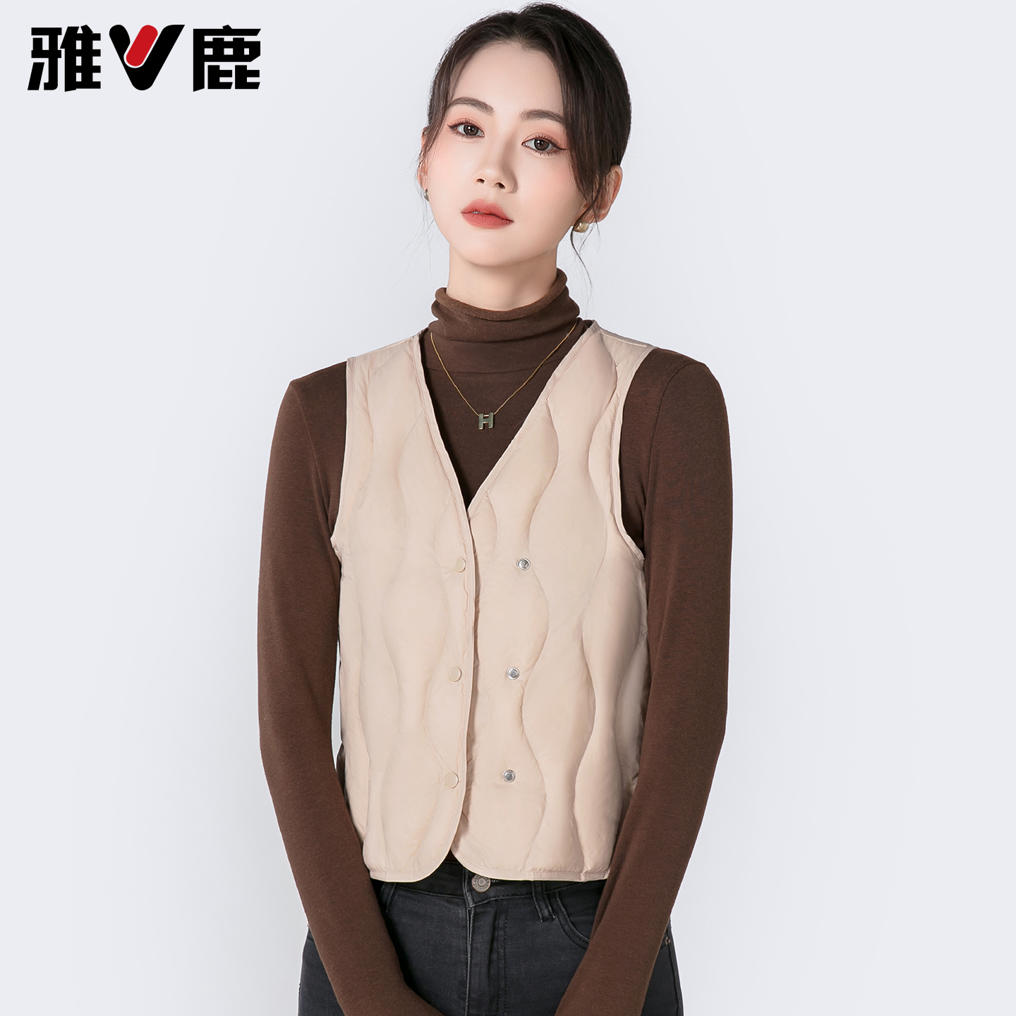 雅鹿羽绒马甲女款轻薄V领秋冬新款羽绒背心百搭时尚修身保暖内胆