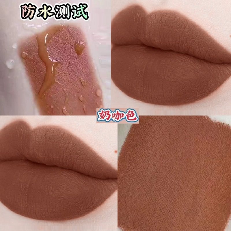 丝绒哑光不沾杯板栗色口红女显白火龙果防水不拔干欧美奶咖焦糖色