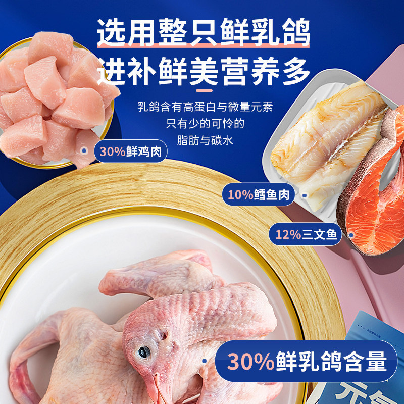 乳鸽猫粮全价全阶段无谷冻干猫咪生骨肉鲜肉鸽肉肉松幼猫肠胃猫粮