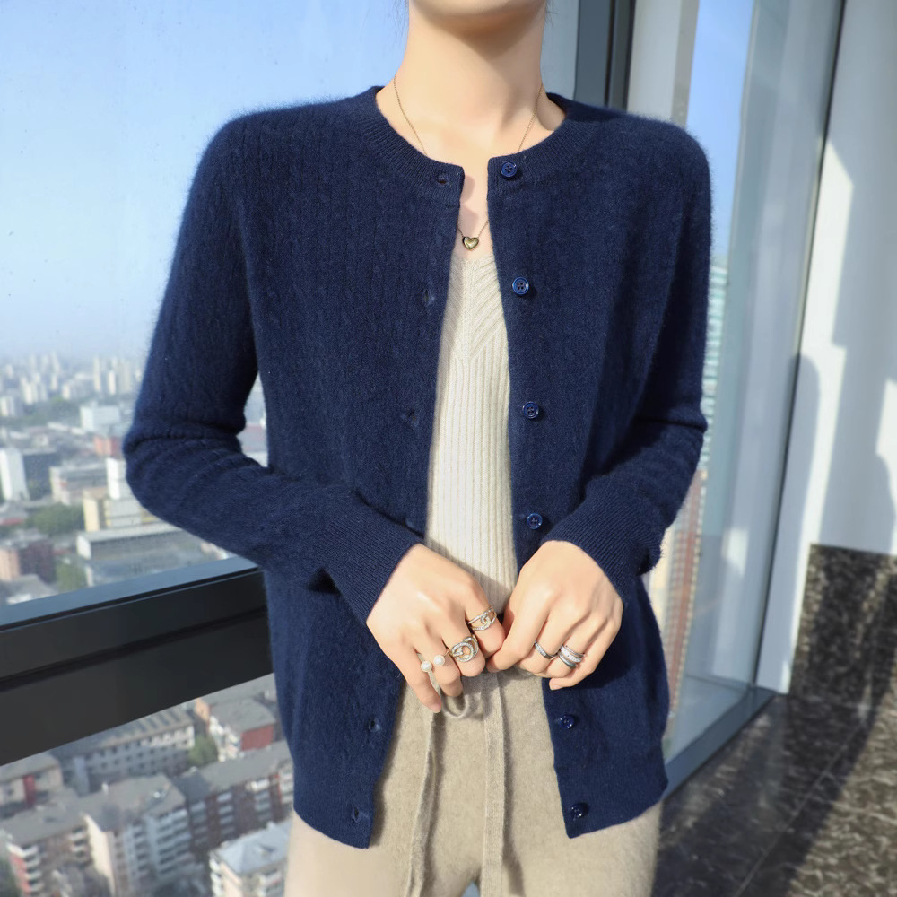 麻花上衣韩系女装秋季毛衣外套长袖圆领针织开衫显瘦潮灰