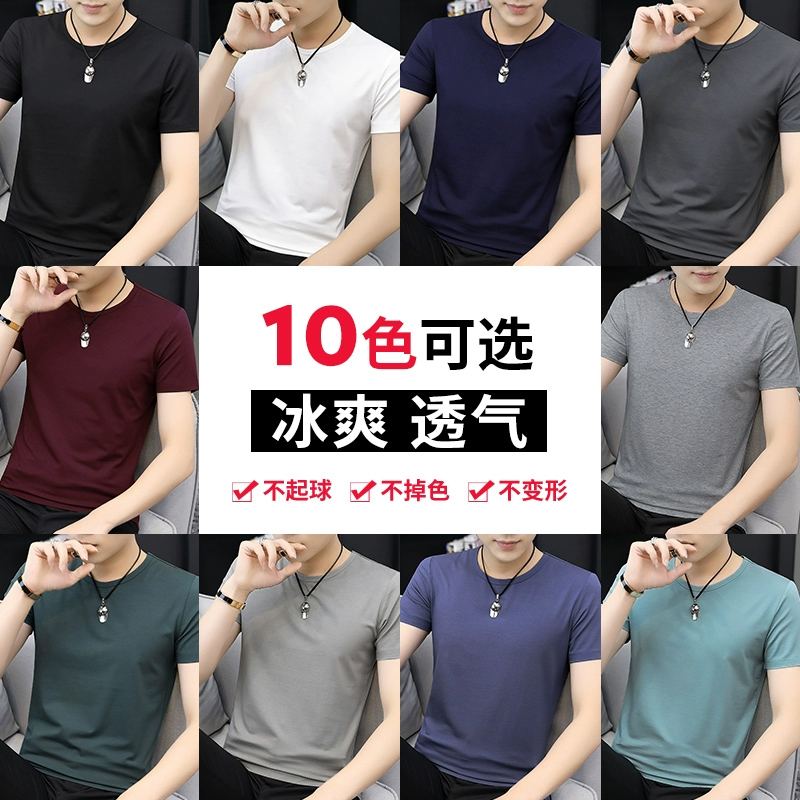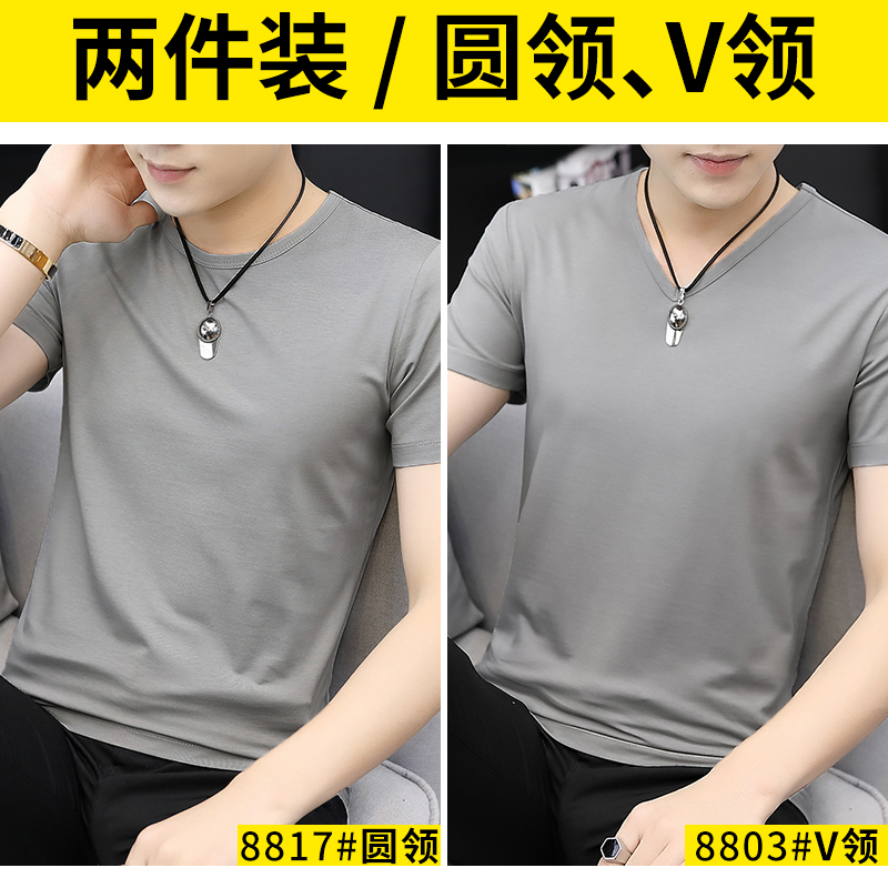 2件】莫代尔男士短袖t恤纯色圆领潮流修身冰丝灰色半袖紧身衣服T