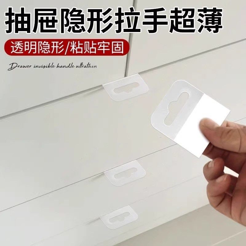 抽屉隐形拉手超薄隐形柜门衣柜抽屉拉手免打孔免钉强力粘贴把手贴