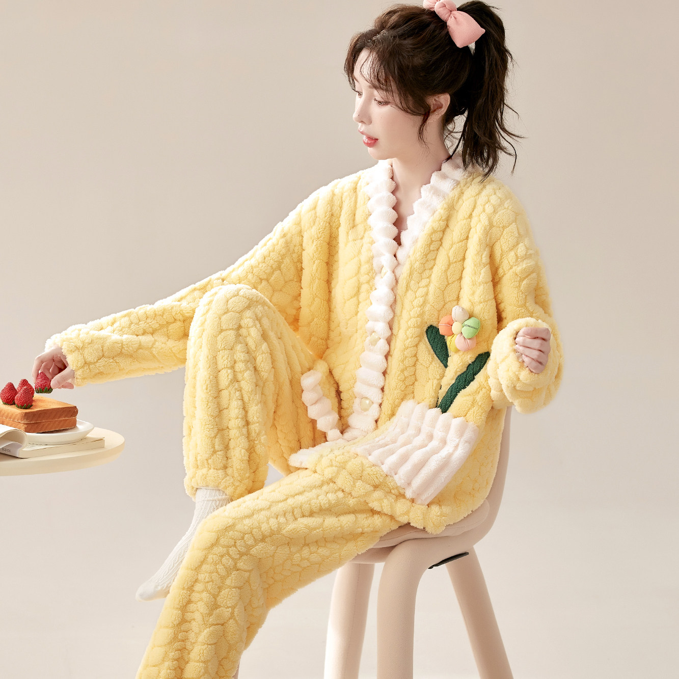 珊瑚绒秋冬季睡衣甜美可爱大码
