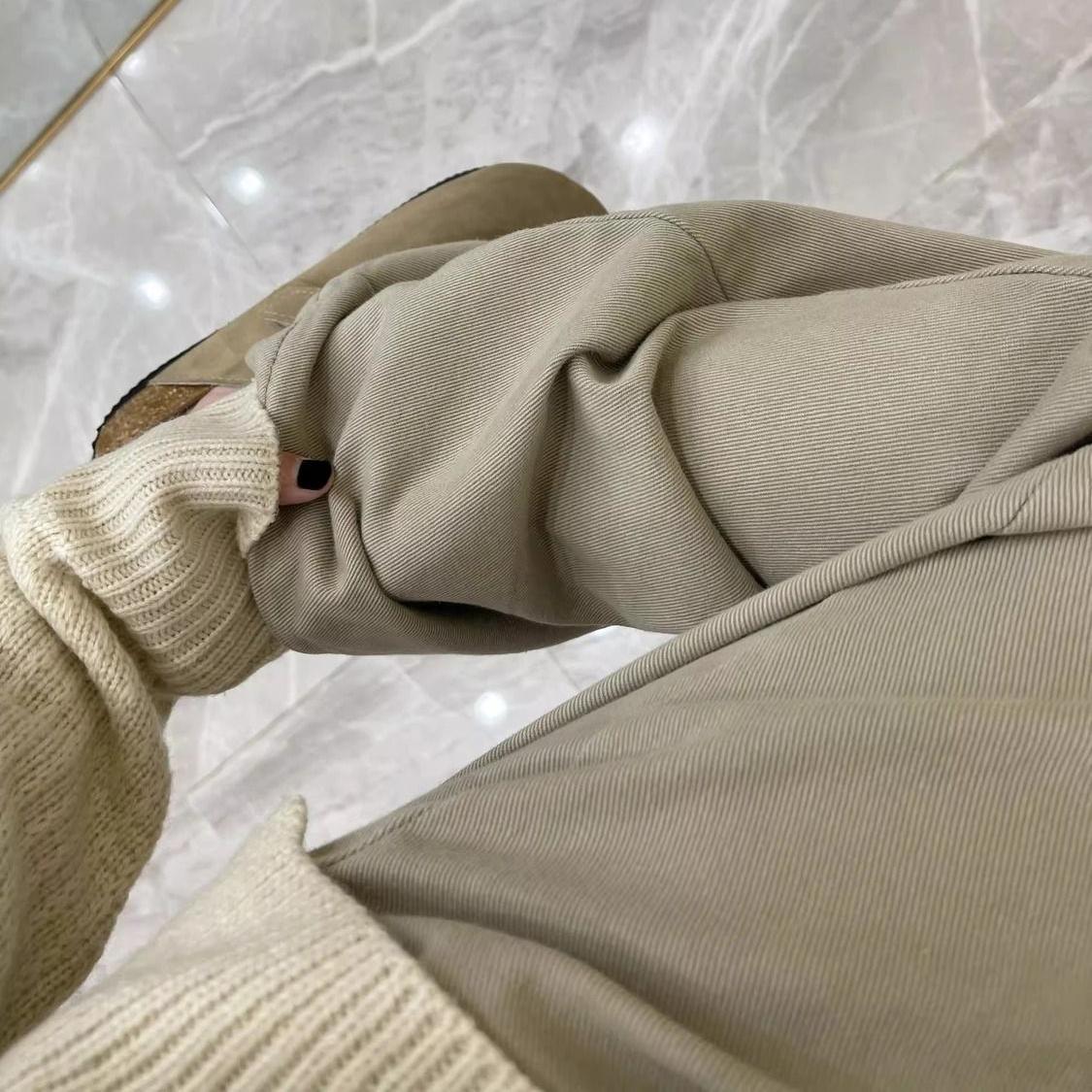 卡其色宽松直筒牛仔裤女春季新款韩版高腰显瘦褶皱设计感阔腿裤子