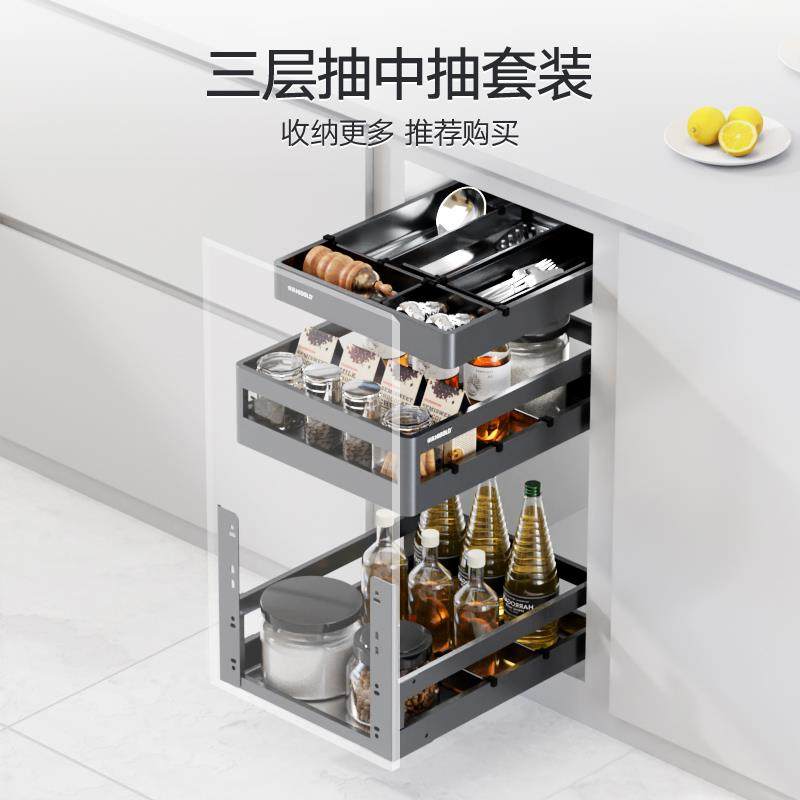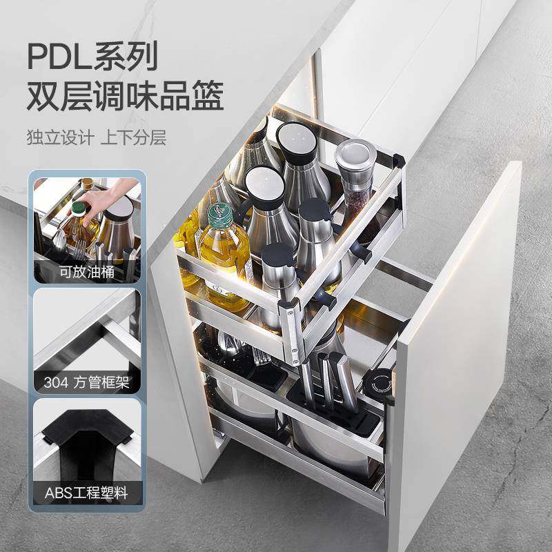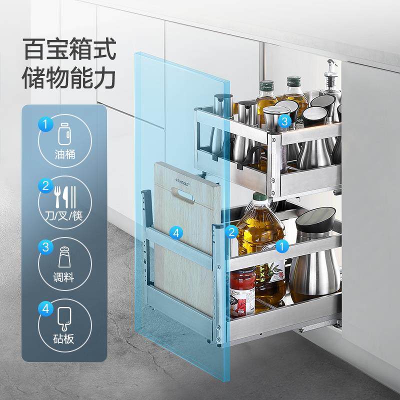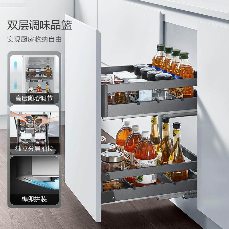 HIGOLD/悍高双层抽屉式内置拉篮304不锈钢厨房橱柜碗架收纳调味篮