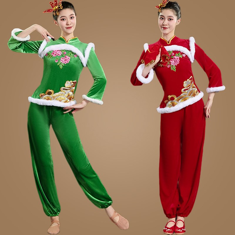 秧歌服舞蹈演出服喜庆民族风跳舞广场舞服装秋冬新款金丝绒套装女