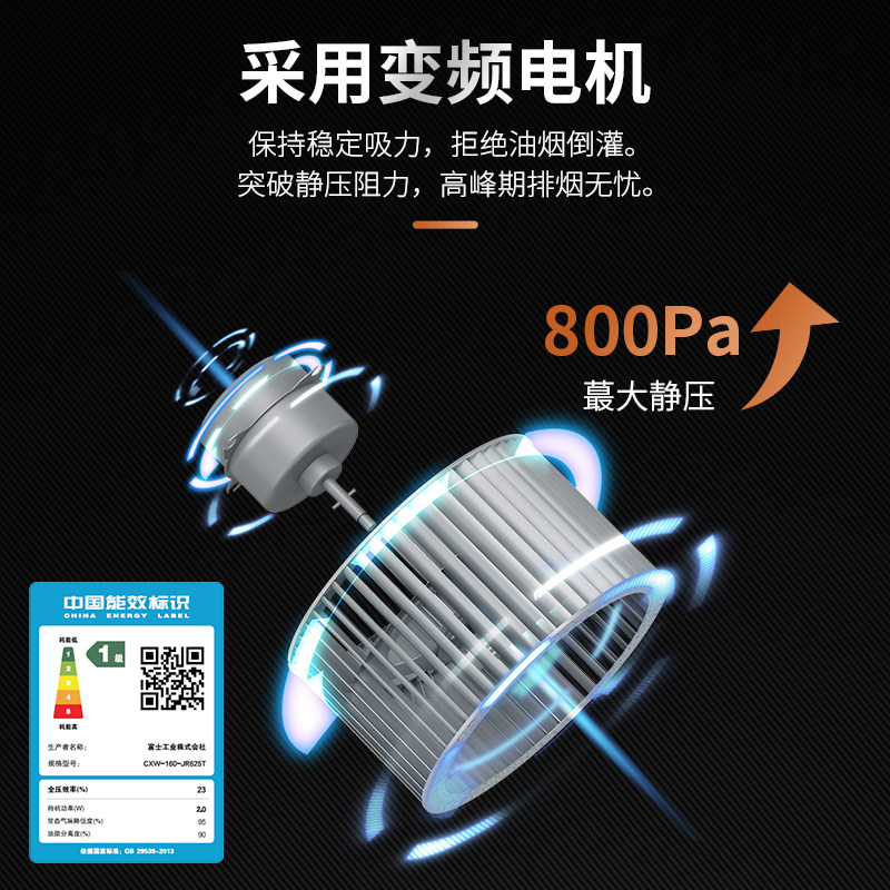 进口富士帝顶吸大风压抽油烟机烟灶组合套装JR625T+FH270