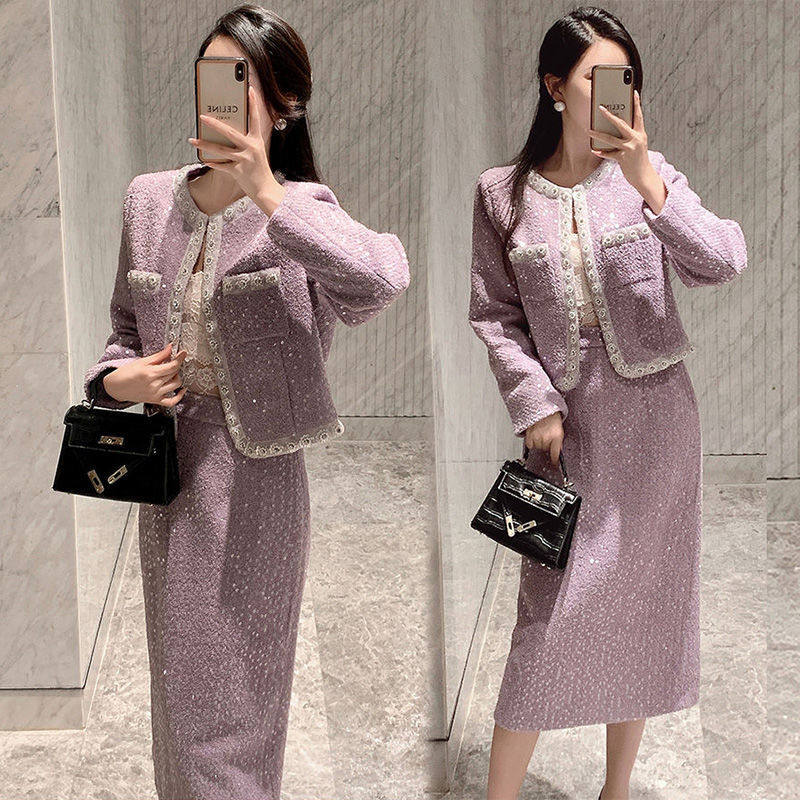 名媛小香风时尚套装2024秋冬新款女装高级感轻奢气质显瘦两件套潮
