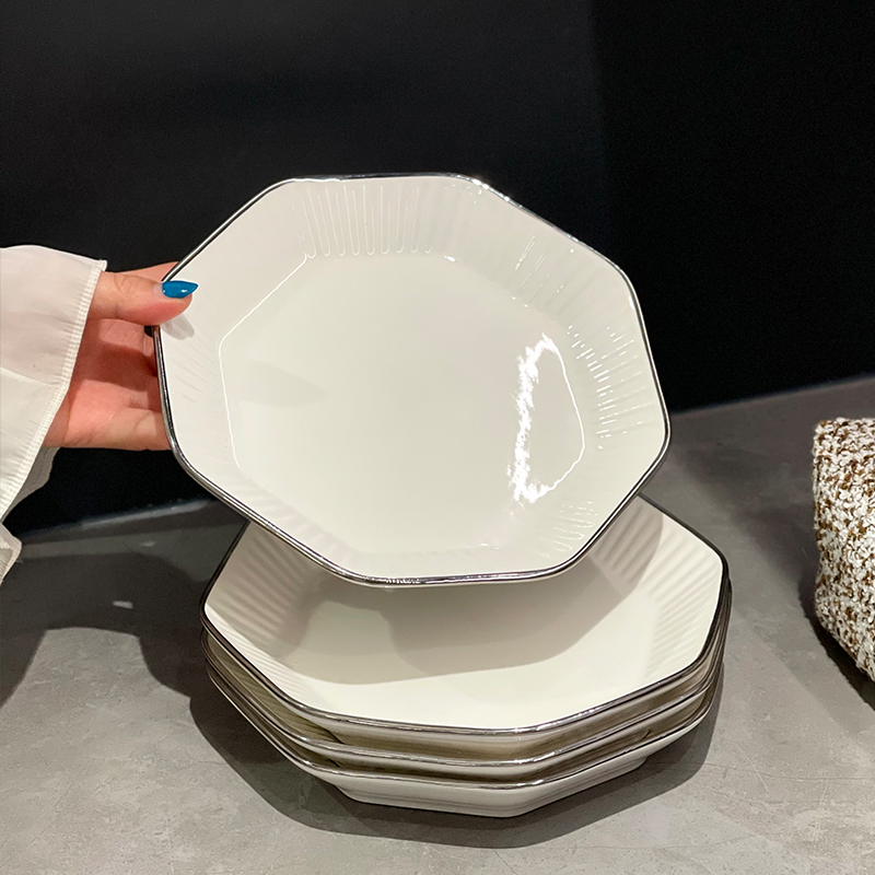 高颜值八角盘子餐具新款陶瓷盘子家用菜盘深盘ins风高级感意面盘
