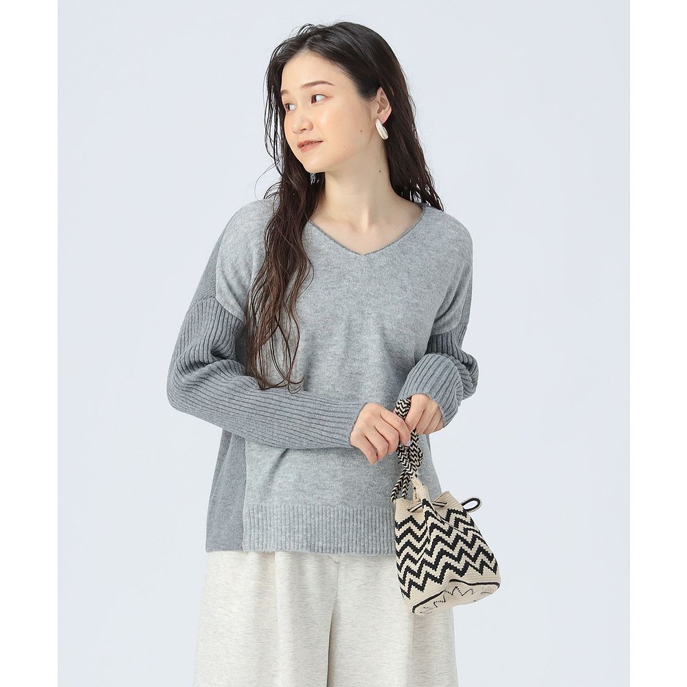 1h可退 日本直邮BEAMS HEART 女装 异材质V领套头针织衫 宽松落肩