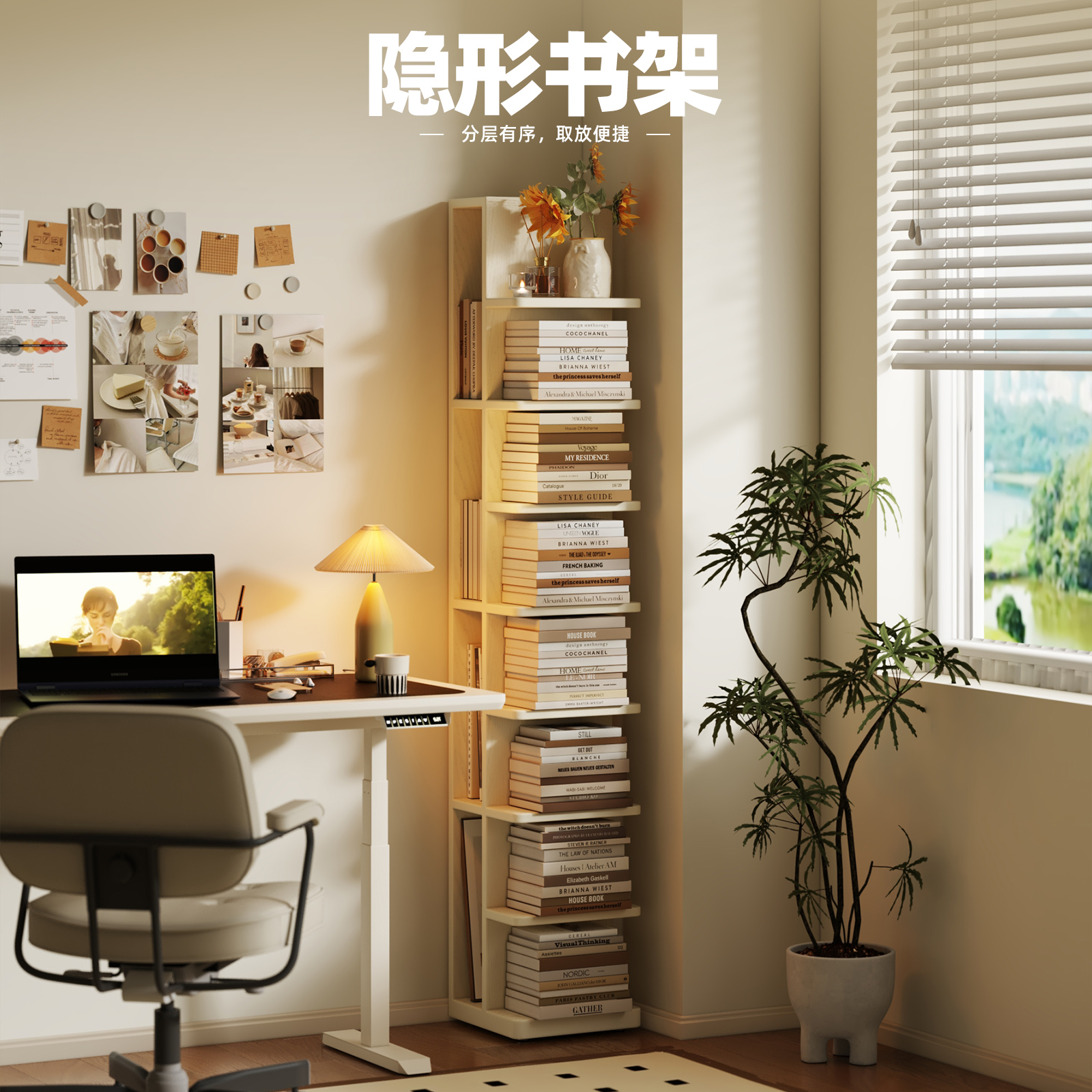 床头书柜储物柜一体落地置物架窄柜实木不占地方的书架多层展示柜