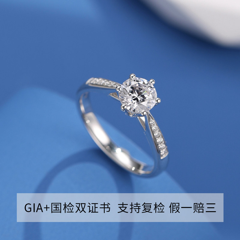 18K金天然真钻石戒指女经典铭记款钻戒GIA钻石一克拉结婚求婚礼物