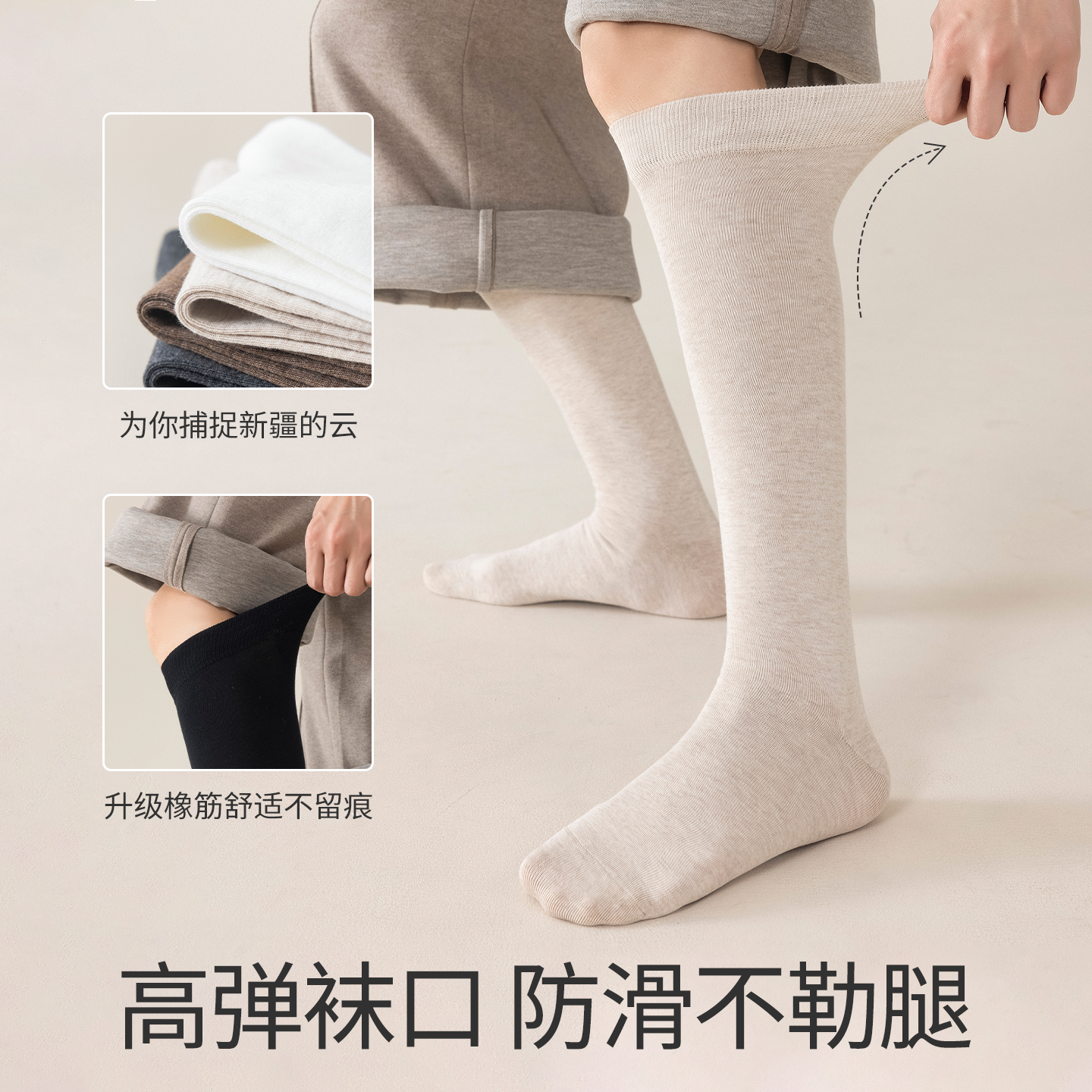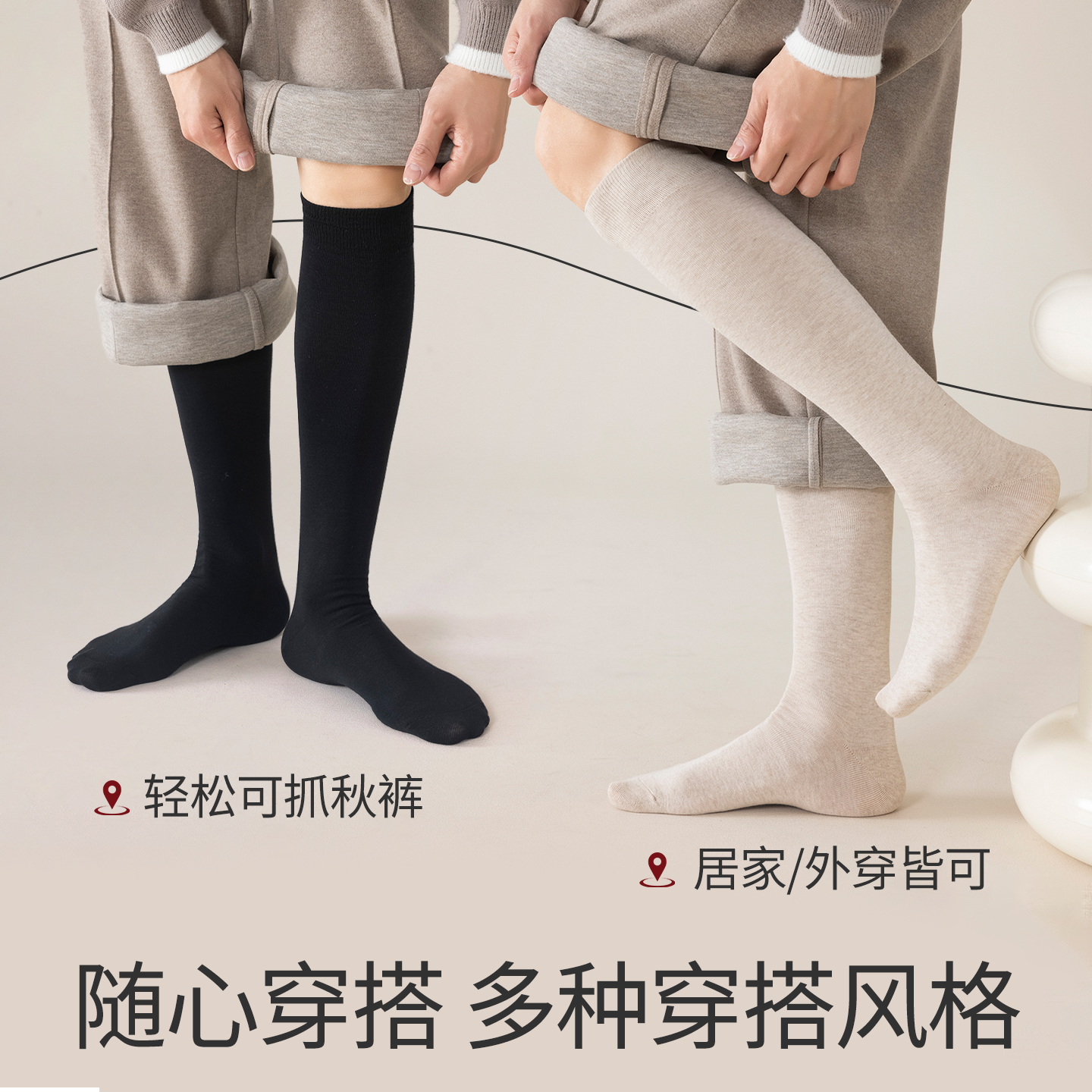 猫人小腿袜男士纯棉商务长筒袜100%棉防臭抑菌保暖防滑高筒袜子男