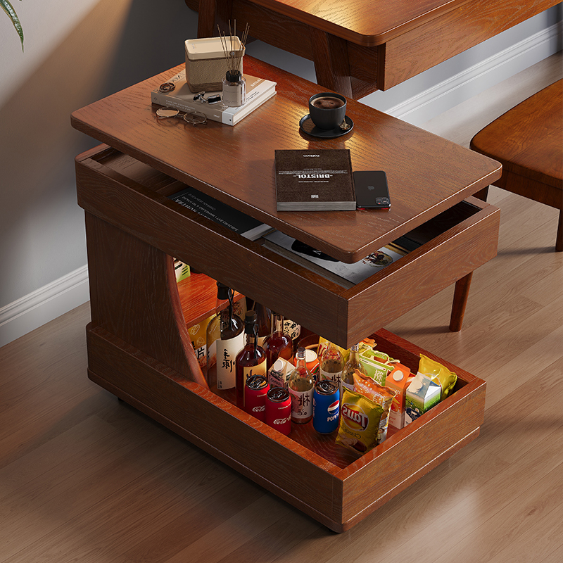 实木折叠移动边几家用沙发复古茶几餐桌一体抽屉边桌阳台推车客厅