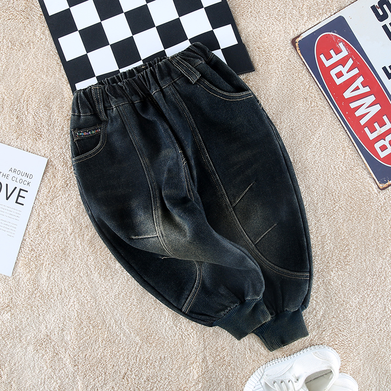 男童加绒牛仔裤2025新款秋冬季儿童装宽松长裤宝宝洋气一体绒裤子