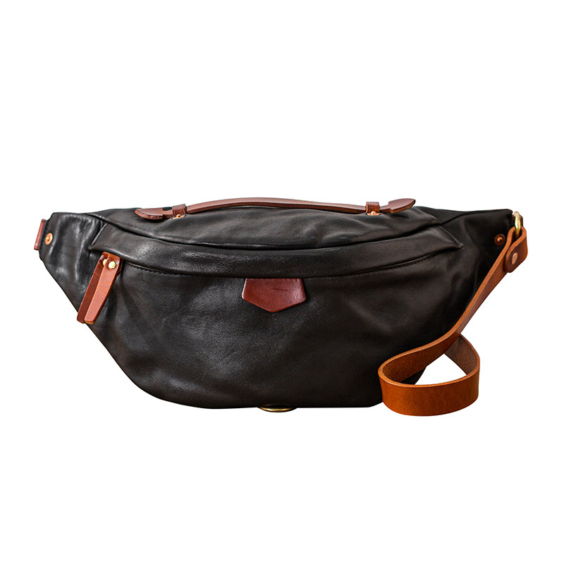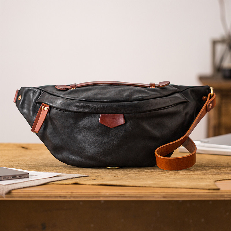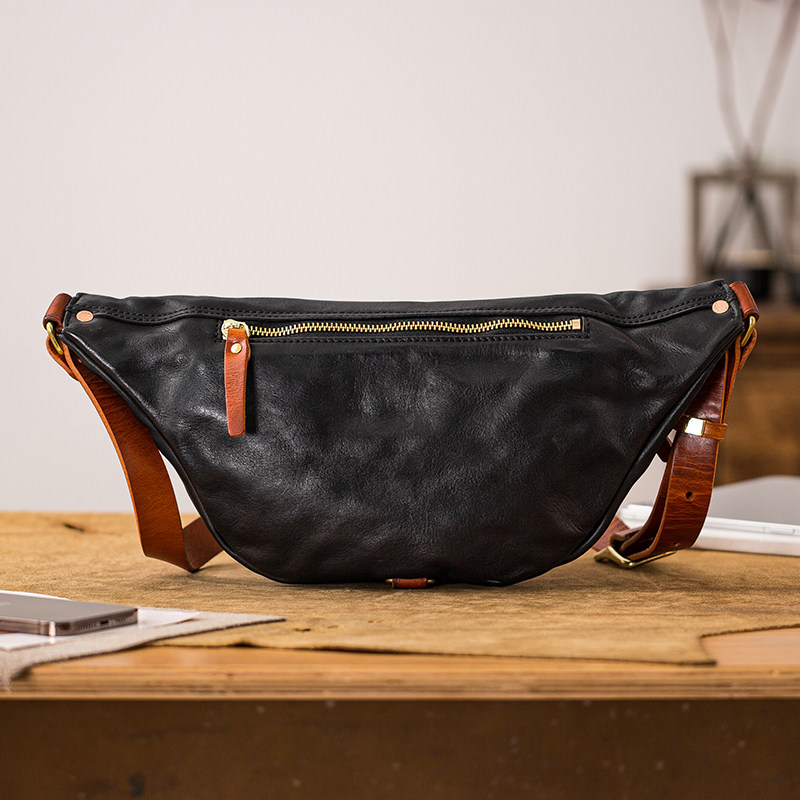后步原创小众胸包软牛皮斜挎包男真皮复古手工运动背包通勤休闲包