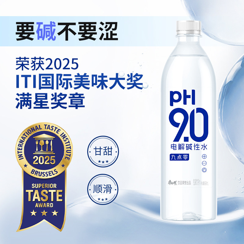 康师傅9.0电解碱性水666ml*30瓶饮用水无糖非苏打水囤货整箱装