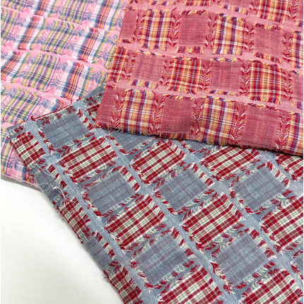 全棉色织流苏格纹BJD小布娃衣面料148*50cm