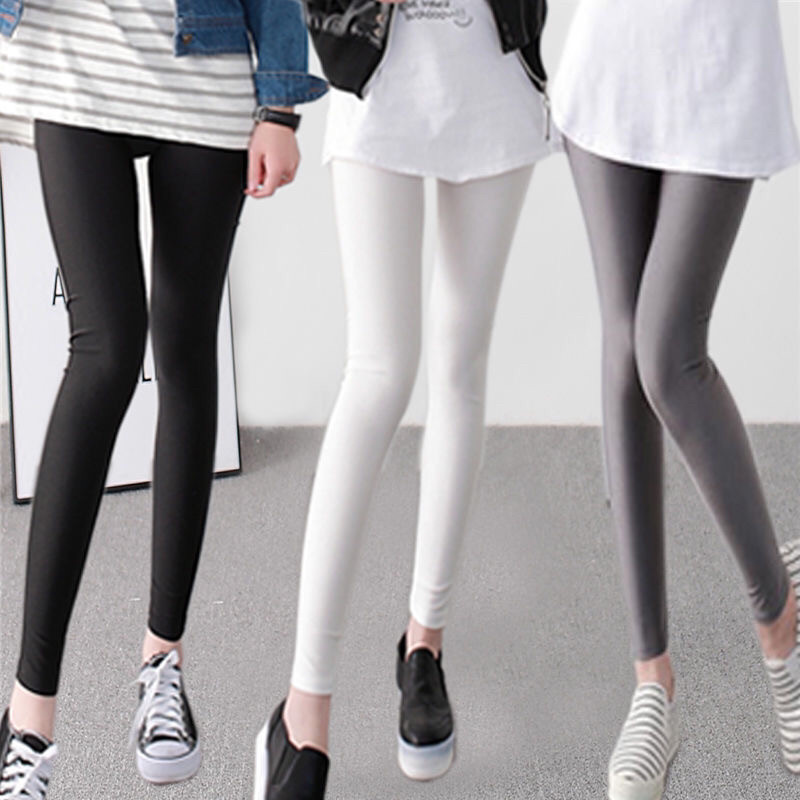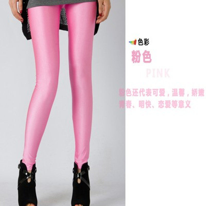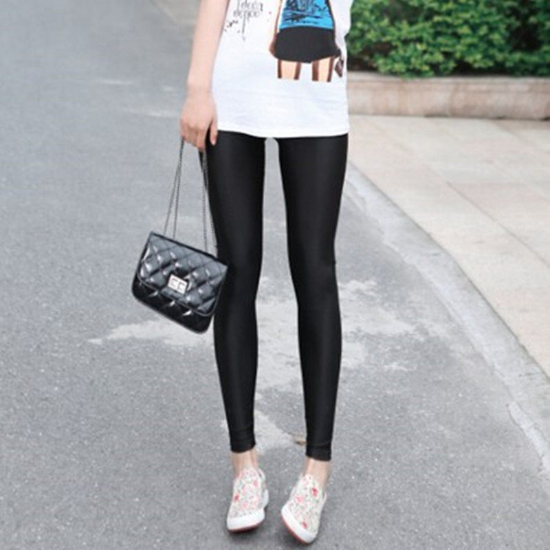 超弹力荧光裤休闲打底裤女外穿显瘦光泽裤薄款九分大码裤子女夏天