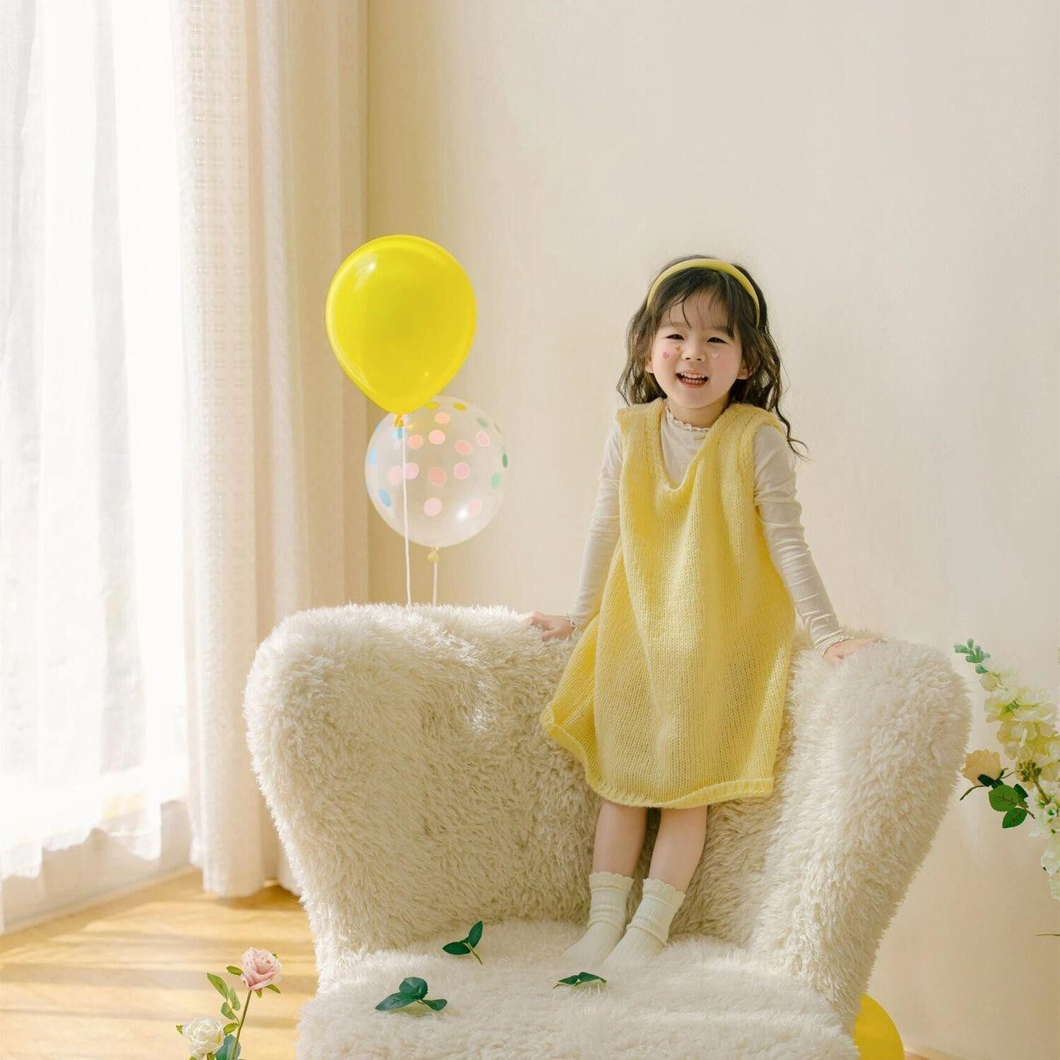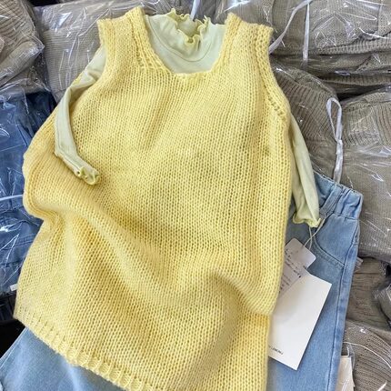 女童针织连衣裙2025春季新款韩系小女孩甜美黄色休闲百搭背心裙洋