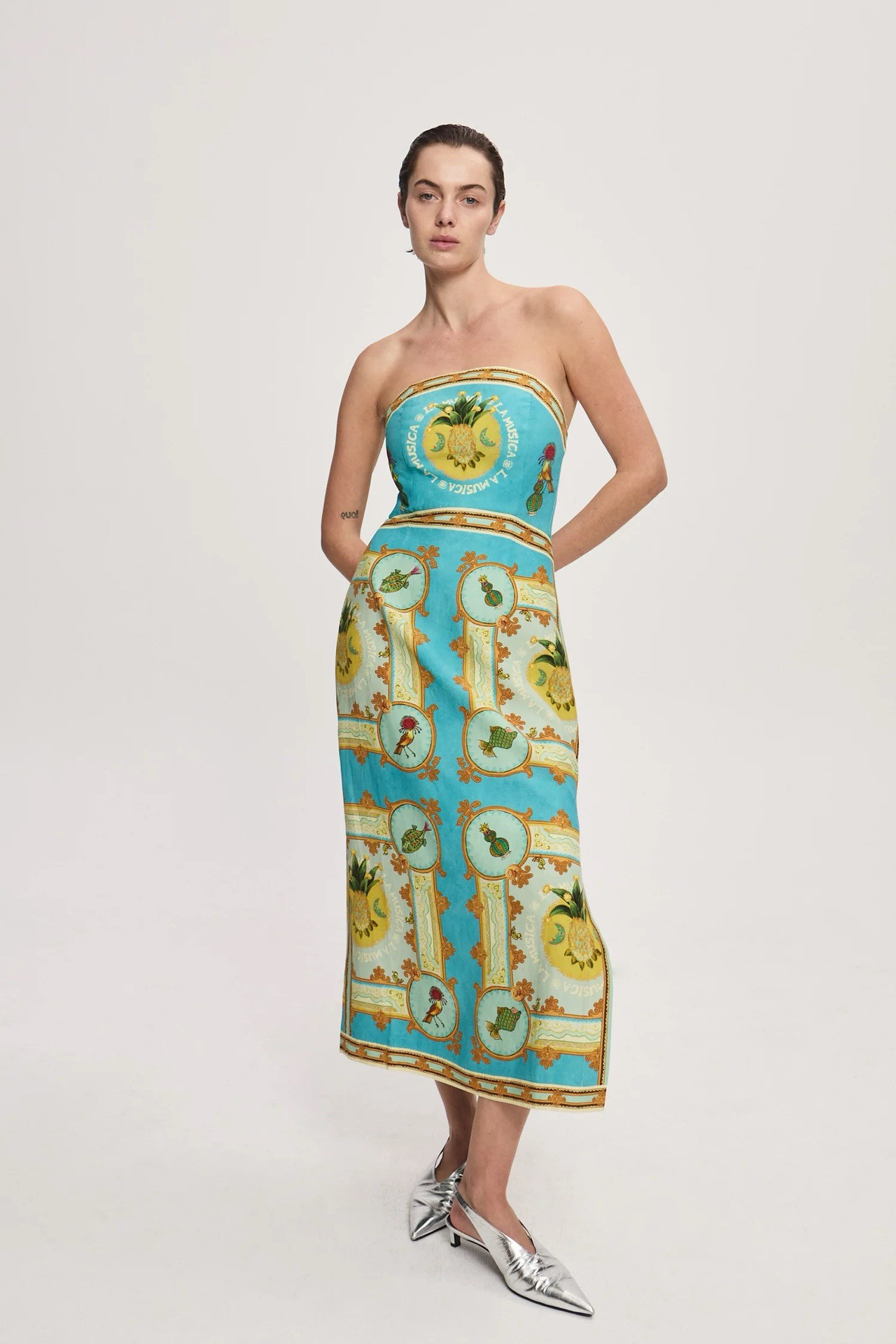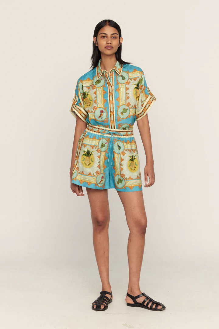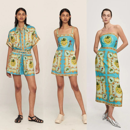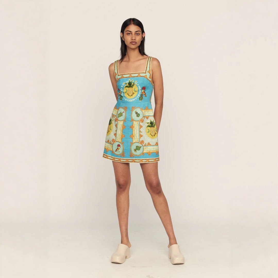 澳洲小众亚麻金黄菠萝印花时尚套装2025夏季新款百搭度假连衣裙女