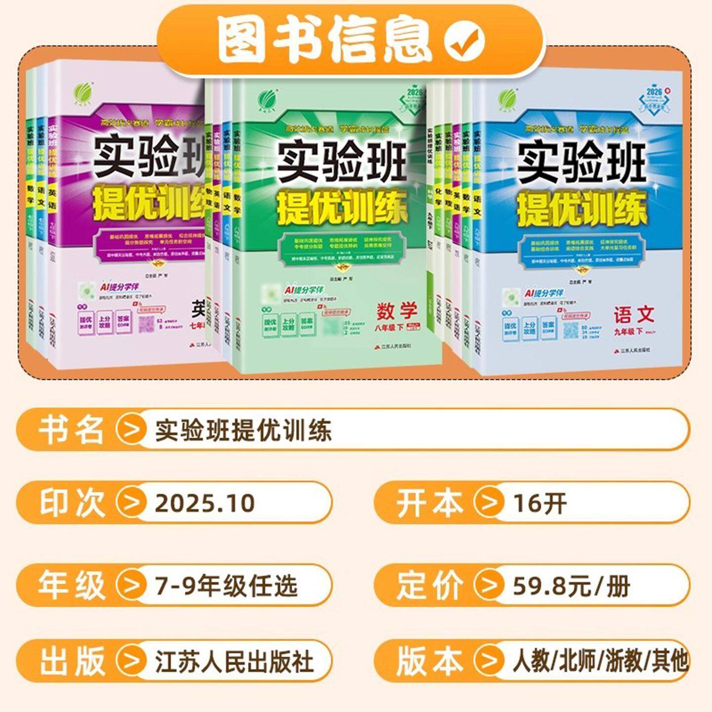 2026春实验班提优训练初中七八九年级下册语文数学英语人教版北师版初中初一练习册刷题训练教辅书教材同步提优课时作业本练习册