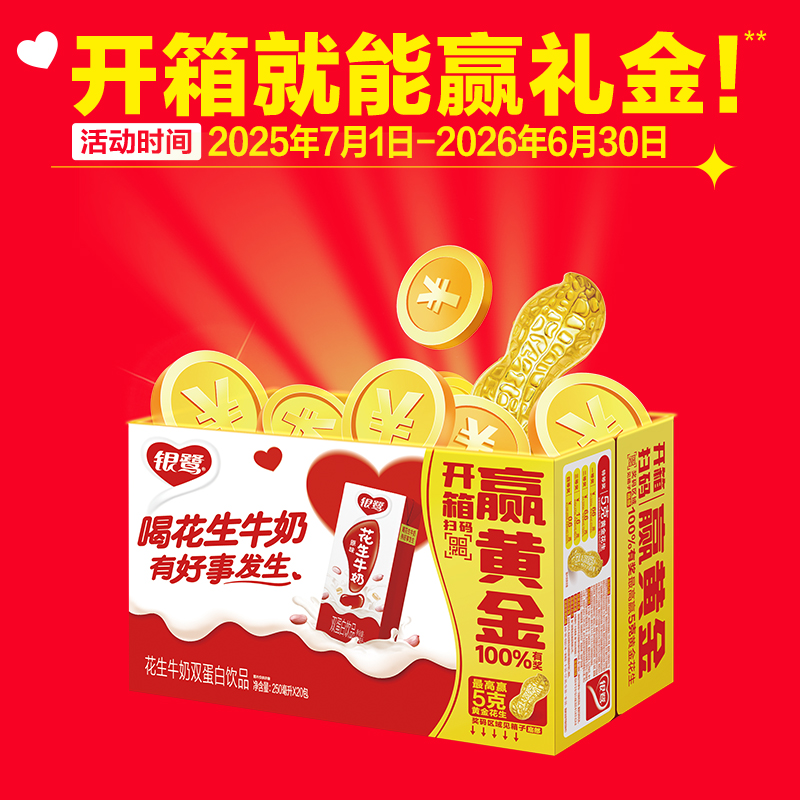 银鹭花生牛奶250ml*20盒早餐牛奶复合蛋白休闲食品饮料