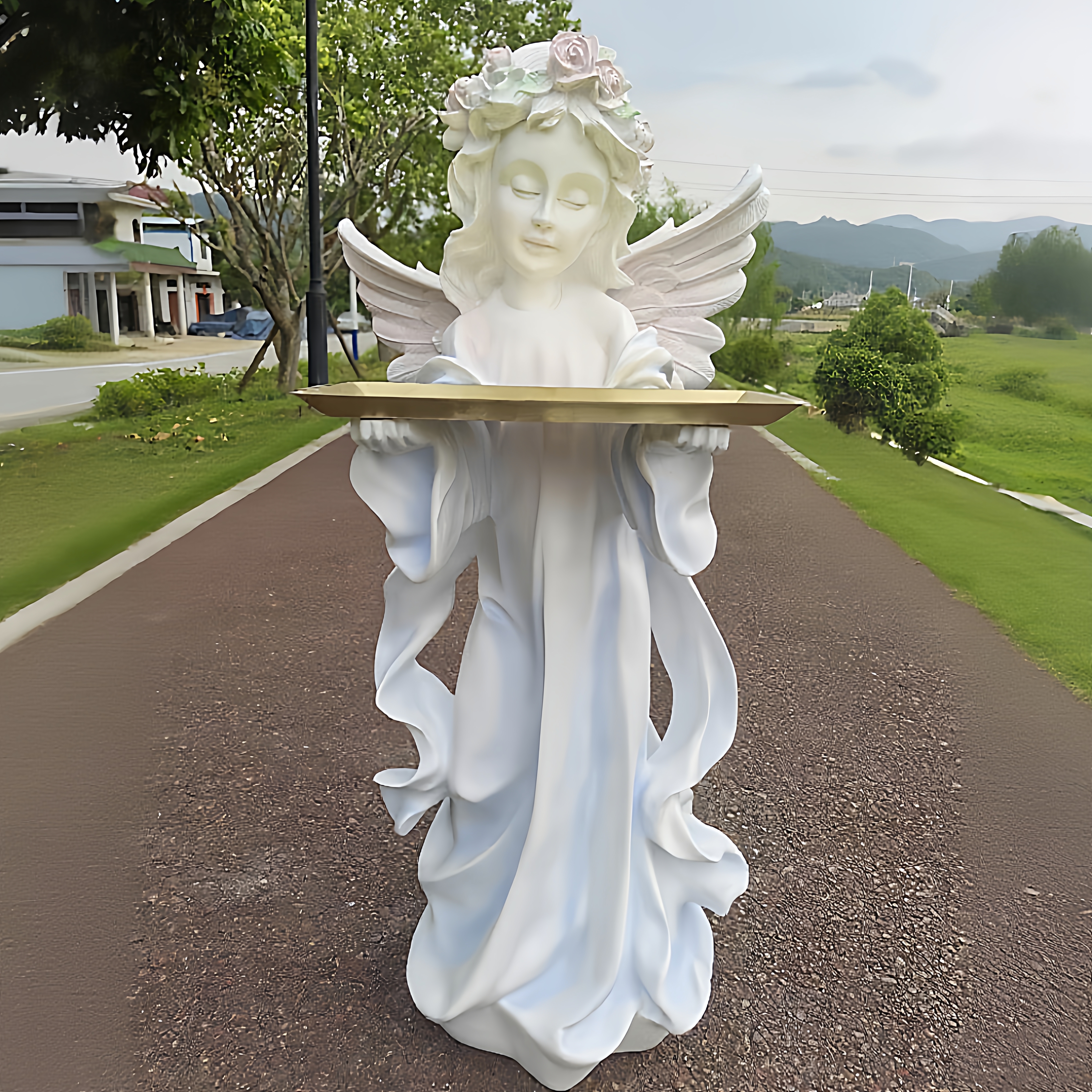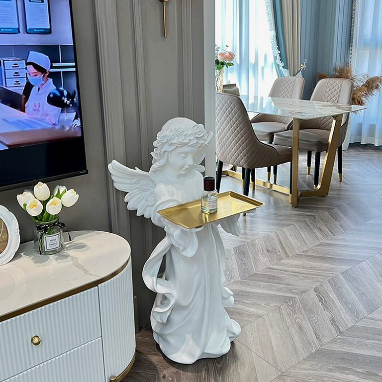 爱丽丝复古托盘法式客厅天使摆件
