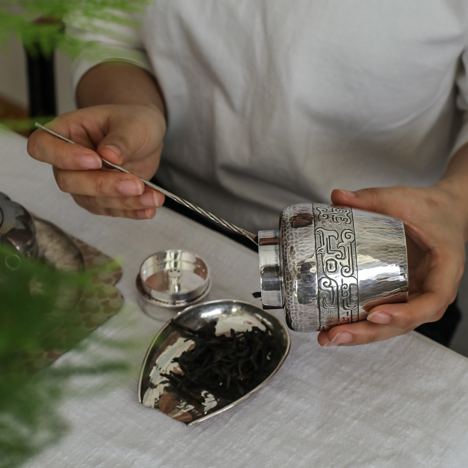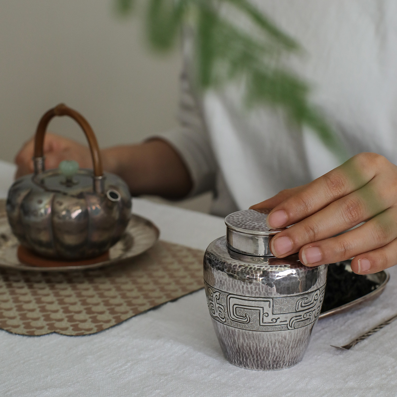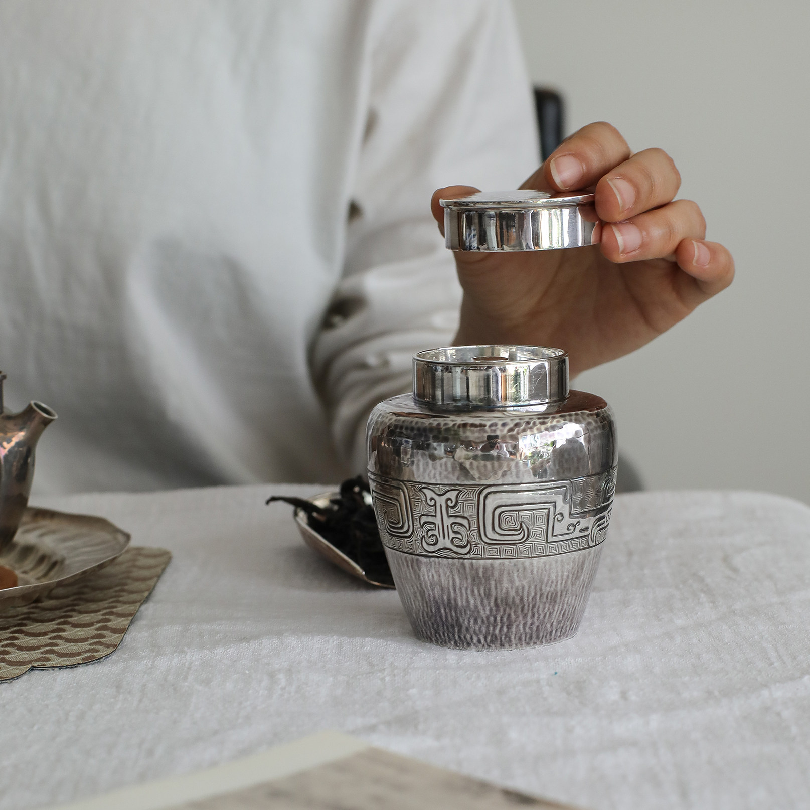 纯银时代 饕餮纹茶叶罐足银999纯手工复古精致便携小银罐茶入150g